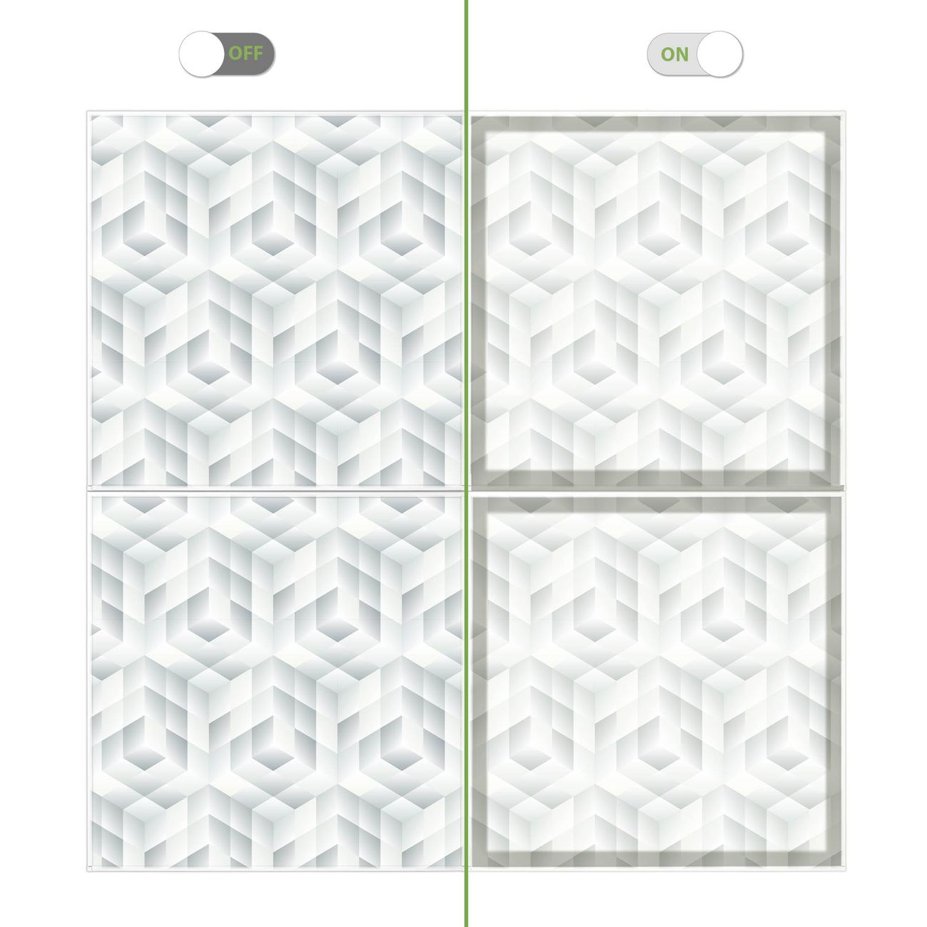 Entdecken Sie unsere vielseitigen Lichtdecken, hier in der Größe 124 x 124cm mit dem Motiv Motiv Würfel Grau - Ihre Beleuchtungslösung für jede Umgebung Beleuchten Sie Ihren Raum nicht nur, sondern schaffen Sie Atmosphäre! Die banjado Lichtdecke verwandelt jeden Ort, ob zu Hause, in Praxen, Büros oder Studios in eine Wohlfühloase. Unsere einzelnen Elemente haben eine genormte Einheitsgröße von 62 x 62cm und können somit in jede gängige Rasterdecken verbaut werden. So finden Sie Ihre passende Ausführung: Gern helfen wir Ihnen, die passende Ausführung zu wählen. Hierfür muss die aktuelle Gegebenheit Ihrer Decke oder Wand beachtet werden. Haben Sie bereits eine Rasterdecke (auch Odenwalddecke genannt)? Hier bestellen Sie lediglich das Motiv + Beleuchtungspanel, denn beides wird in die bereits vorhandene Decke eingelegt. Haben Sie eine glatte Decke mit Lichtauslass oder möchten die Lichtdecke an der Wand befestigen? Hier bestellen Sie bitte Motiv + Beleuchtungspanel + Deckenbefestigung, eine Aufbauanleitung liegt immer bei. Die Lichtdecke kann sowohl an der Decke als auch an der Wand montiert werden, perfekt für kreative Lichtakzente oder alternative Beleuchtungslösungen. Haben Sie bereits eine Lichtdecke und möchten nur das Motiv wechseln? Hier bestellen Sie bitte nur Motiv, der Wechsel ist denkbar einfach. Der Aufbau Ihrer banjado Lichtdecke gestaltet sich unkompliziert, dank einer verständlichen Anleitung, die Ihnen Schritt für Schritt durch den Montageprozess hilft. Für die endgültige Installation und den sicheren Anschluss empfehlen wir die Hinzuziehung eines Fachmanns, um die optimale Funktion und Sicherheit Ihrer Beleuchtung zu gewährleisten. Falls Sie einen Fachmann für die Installation benötigen, geben Sie uns gern Bescheid, wir vermitteln Ihnen gern einen geeigneten Ansprechpartner aus Ihrer Nähe. Steuerung: Steigern Sie Ihr Beleuchtungserlebnis mit der nahtlosen Integration in Ihr Smart Home. Durch die Kompatibilität mit der SmartLife App, Alexa und Google Assistant wird Ihr Smartphone zur zentralen Steuerungseinheit. Ihr Handy fungiert hierbei sozusagen als Fernbedienung. Legen Sie individuelle Lichtszenen in der App fest, die bei Aktivierung über den Wand-Ein-/Ausschalter immer wieder abgerufen werden können ohne Handy. Mit der Szenenfunktion in der Smart App können Sie die Beleuchtung personalisieren und steuern, sodass sie auf Ihre individuellen Bedürfnisse, Tagesrhythmus und Stimmung zugeschnitten ist. Beispielsweise können Sie sich in der Morgendämmerung durch ein sanftes Licht wecken lassen oder das Licht der Praxis werktags um 7 Uhr automatisch einschalten lassen. Dieses kann dann natürlich auch zu einer bestimmten Zeit automatisch ausgeschaltet werden. Motivwahl: Diese einzigartige Lichtdecke zeichnet sich durch ihre Fähigkeit aus, die Lichtfarbe je nach gewähltem Motiv anzupassen - ein Baum wirft ein sanftes grünes Licht, während eine Wolkendecke Ihren Raum in ein beruhigendes blaues Leuchten hüllt. Berücksichtigen Sie dies bitte bei Ihrer Motivauswahl. Sie können das Motiv jederzeit ohne großen Aufwand austauschen, ob nach Jahreszeit oder anderem Anlass, unsere Auswahl lässt kaum Wünsche offen. Wir fertigen Ihnen gern eine personalisierte Lichtdecke mit einem eigenen Motiv oder Logo oder Foto, schreiben Sie uns jederzeit an. Technische Daten: Das Motiv ist auf einer 4mm starken Acrylglas Scheibe aufgebracht, das Gesamtgewicht Ihrer Ausführung beträgt 19,7kg. Die Farbtemperatur lässt sich frei einstellen von 3000 bis 6000 Kelvin, damit können Sie stufenlos zwischen warmweiß, neutralweiß und kaltweiß wählen. Die Gesamtleistung bei Ihrer gewählten Ausführung beträgt 160W. Der Lichtstrom beträgt 3600 Lumen, die Nennspannung 230 V. Die Lichtdecke ist mit Schutzart IP20 für den Innenbereich konzipiert und sollte nicht im Nassbereich verwendet werden.