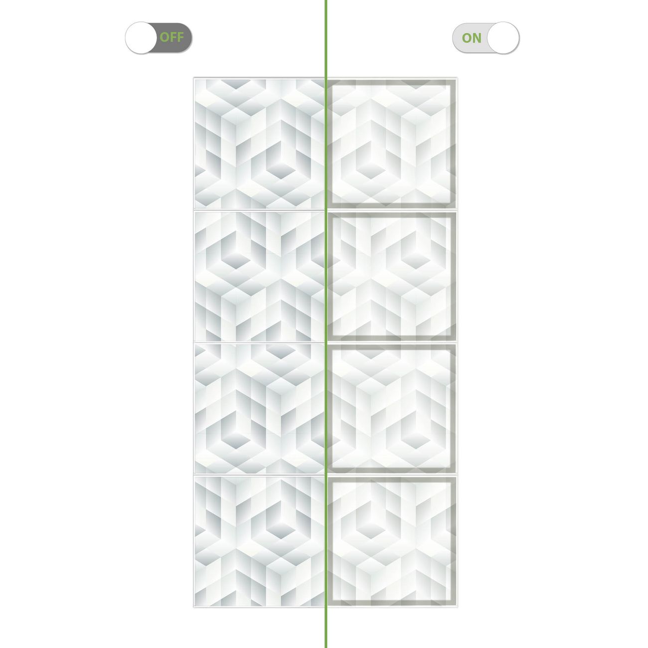 Entdecken Sie unsere vielseitigen Lichtdecken, hier in der Größe 124 x 248cm mit dem Motiv Motiv Würfel Grau - Ihre Beleuchtungslösung für jede Umgebung Beleuchten Sie Ihren Raum nicht nur, sondern schaffen Sie Atmosphäre! Die banjado Lichtdecke verwandelt jeden Ort, ob zu Hause, in Praxen, Büros oder Studios in eine Wohlfühloase. Unsere einzelnen Elemente haben eine genormte Einheitsgröße von 62 x 62cm und können somit in jede gängige Rasterdecken verbaut werden. So finden Sie Ihre passende Ausführung: Gern helfen wir Ihnen, die passende Ausführung zu wählen. Hierfür muss die aktuelle Gegebenheit Ihrer Decke oder Wand beachtet werden. Haben Sie bereits eine Rasterdecke (auch Odenwalddecke genannt)? Hier bestellen Sie lediglich das Motiv + Beleuchtungspanel, denn beides wird in die bereits vorhandene Decke eingelegt. Haben Sie eine glatte Decke mit Lichtauslass oder möchten die Lichtdecke an der Wand befestigen? Hier bestellen Sie bitte Motiv + Beleuchtungspanel + Deckenbefestigung, eine Aufbauanleitung liegt immer bei. Die Lichtdecke kann sowohl an der Decke als auch an der Wand montiert werden, perfekt für kreative Lichtakzente oder alternative Beleuchtungslösungen. Haben Sie bereits eine Lichtdecke und möchten nur das Motiv wechseln? Hier bestellen Sie bitte nur Motiv, der Wechsel ist denkbar einfach. Der Aufbau Ihrer banjado Lichtdecke gestaltet sich unkompliziert, dank einer verständlichen Anleitung, die Ihnen Schritt für Schritt durch den Montageprozess hilft. Für die endgültige Installation und den sicheren Anschluss empfehlen wir die Hinzuziehung eines Fachmanns, um die optimale Funktion und Sicherheit Ihrer Beleuchtung zu gewährleisten. Falls Sie einen Fachmann für die Installation benötigen, geben Sie uns gern Bescheid, wir vermitteln Ihnen gern einen geeigneten Ansprechpartner aus Ihrer Nähe. Steuerung: Steigern Sie Ihr Beleuchtungserlebnis mit der nahtlosen Integration in Ihr Smart Home. Durch die Kompatibilität mit der SmartLife App, Alexa und Google Assistant wird Ihr Smartphone zur zentralen Steuerungseinheit. Ihr Handy fungiert hierbei sozusagen als Fernbedienung. Legen Sie individuelle Lichtszenen in der App fest, die bei Aktivierung über den Wand-Ein-/Ausschalter immer wieder abgerufen werden können ohne Handy. Mit der Szenenfunktion in der Smart App können Sie die Beleuchtung personalisieren und steuern, sodass sie auf Ihre individuellen Bedürfnisse, Tagesrhythmus und Stimmung zugeschnitten ist. Beispielsweise können Sie sich in der Morgendämmerung durch ein sanftes Licht wecken lassen oder das Licht der Praxis werktags um 7 Uhr automatisch einschalten lassen. Dieses kann dann natürlich auch zu einer bestimmten Zeit automatisch ausgeschaltet werden. Motivwahl: Diese einzigartige Lichtdecke zeichnet sich durch ihre Fähigkeit aus, die Lichtfarbe je nach gewähltem Motiv anzupassen - ein Baum wirft ein sanftes grünes Licht, während eine Wolkendecke Ihren Raum in ein beruhigendes blaues Leuchten hüllt. Berücksichtigen Sie dies bitte bei Ihrer Motivauswahl. Sie können das Motiv jederzeit ohne großen Aufwand austauschen, ob nach Jahreszeit oder anderem Anlass, unsere Auswahl lässt kaum Wünsche offen. Wir fertigen Ihnen gern eine personalisierte Lichtdecke mit einem eigenen Motiv oder Logo oder Foto, schreiben Sie uns jederzeit an. Technische Daten: Das Motiv ist auf einer 4mm starken Acrylglas Scheibe aufgebracht, das Gesamtgewicht Ihrer Ausführung beträgt 18,1kg. Die Farbtemperatur lässt sich frei einstellen von 3000 bis 6000 Kelvin, damit können Sie stufenlos zwischen warmweiß, neutralweiß und kaltweiß wählen. Die Gesamtleistung bei Ihrer gewählten Ausführung beträgt 320W. Der Lichtstrom beträgt 3600 Lumen, die Nennspannung 230 V. Die Lichtdecke ist mit Schutzart IP20 für den Innenbereich konzipiert und sollte nicht im Nassbereich verwendet werden.