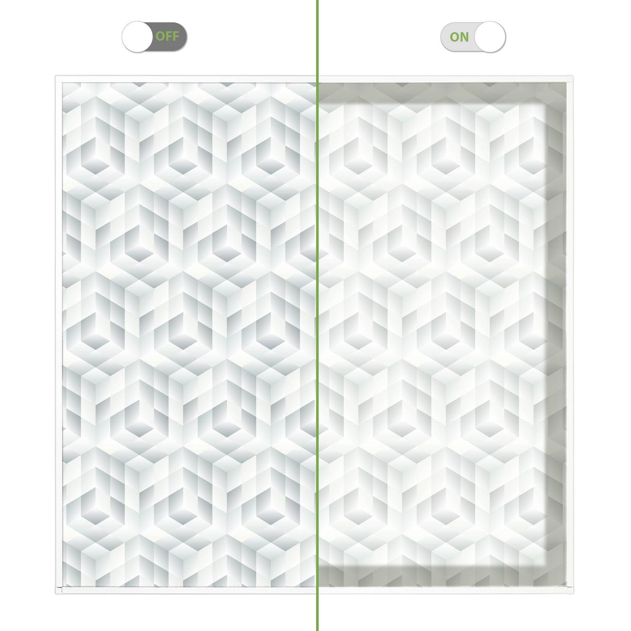 Entdecken Sie unsere vielseitigen Lichtdecken, hier in der Größe 62 x 62cm mit dem Motiv Motiv Würfel Grau - Ihre Beleuchtungslösung für jede Umgebung Beleuchten Sie Ihren Raum nicht nur, sondern schaffen Sie Atmosphäre! Die banjado Lichtdecke verwandelt jeden Ort, ob zu Hause, in Praxen, Büros oder Studios in eine Wohlfühloase. Unsere einzelnen Elemente haben eine genormte Einheitsgröße von 62 x 62cm und können somit in jede gängige Rasterdecken verbaut werden. So finden Sie Ihre passende Ausführung: Gern helfen wir Ihnen, die passende Ausführung zu wählen. Hierfür muss die aktuelle Gegebenheit Ihrer Decke oder Wand beachtet werden. Haben Sie bereits eine Rasterdecke (auch Odenwalddecke genannt)? Hier bestellen Sie lediglich das Motiv + Beleuchtungspanel, denn beides wird in die bereits vorhandene Decke eingelegt. Haben Sie eine glatte Decke mit Lichtauslass oder möchten die Lichtdecke an der Wand befestigen? Hier bestellen Sie bitte Motiv + Beleuchtungspanel + Deckenbefestigung, eine Aufbauanleitung liegt immer bei. Die Lichtdecke kann sowohl an der Decke als auch an der Wand montiert werden, perfekt für kreative Lichtakzente oder alternative Beleuchtungslösungen. Haben Sie bereits eine Lichtdecke und möchten nur das Motiv wechseln? Hier bestellen Sie bitte nur Motiv, der Wechsel ist denkbar einfach. Der Aufbau Ihrer banjado Lichtdecke gestaltet sich unkompliziert, dank einer verständlichen Anleitung, die Ihnen Schritt für Schritt durch den Montageprozess hilft. Für die endgültige Installation und den sicheren Anschluss empfehlen wir die Hinzuziehung eines Fachmanns, um die optimale Funktion und Sicherheit Ihrer Beleuchtung zu gewährleisten. Falls Sie einen Fachmann für die Installation benötigen, geben Sie uns gern Bescheid, wir vermitteln Ihnen gern einen geeigneten Ansprechpartner aus Ihrer Nähe. Steuerung: Steigern Sie Ihr Beleuchtungserlebnis mit der nahtlosen Integration in Ihr Smart Home. Durch die Kompatibilität mit der SmartLife App, Alexa und Google Assistant wird Ihr Smartphone zur zentralen Steuerungseinheit. Ihr Handy fungiert hierbei sozusagen als Fernbedienung. Legen Sie individuelle Lichtszenen in der App fest, die bei Aktivierung über den Wand-Ein-/Ausschalter immer wieder abgerufen werden können ohne Handy. Mit der Szenenfunktion in der Smart App können Sie die Beleuchtung personalisieren und steuern, sodass sie auf Ihre individuellen Bedürfnisse, Tagesrhythmus und Stimmung zugeschnitten ist. Beispielsweise können Sie sich in der Morgendämmerung durch ein sanftes Licht wecken lassen oder das Licht der Praxis werktags um 7 Uhr automatisch einschalten lassen. Dieses kann dann natürlich auch zu einer bestimmten Zeit automatisch ausgeschaltet werden. Motivwahl: Diese einzigartige Lichtdecke zeichnet sich durch ihre Fähigkeit aus, die Lichtfarbe je nach gewähltem Motiv anzupassen - ein Baum wirft ein sanftes grünes Licht, während eine Wolkendecke Ihren Raum in ein beruhigendes blaues Leuchten hüllt. Berücksichtigen Sie dies bitte bei Ihrer Motivauswahl. Sie können das Motiv jederzeit ohne großen Aufwand austauschen, ob nach Jahreszeit oder anderem Anlass, unsere Auswahl lässt kaum Wünsche offen. Wir fertigen Ihnen gern eine personalisierte Lichtdecke mit einem eigenen Motiv oder Logo oder Foto, schreiben Sie uns jederzeit an. Technische Daten: Das Motiv ist auf einer 4mm starken Acrylglas Scheibe aufgebracht, das Gesamtgewicht Ihrer Ausführung beträgt 4,4kg. Die Farbtemperatur lässt sich frei einstellen von 3000 bis 6000 Kelvin, damit können Sie stufenlos zwischen warmweiß, neutralweiß und kaltweiß wählen. Die Gesamtleistung bei Ihrer gewählten Ausführung beträgt 40W. Der Lichtstrom beträgt 3600 Lumen, die Nennspannung 230 V. Die Lichtdecke ist mit Schutzart IP20 für den Innenbereich konzipiert und sollte nicht im Nassbereich verwendet werden.