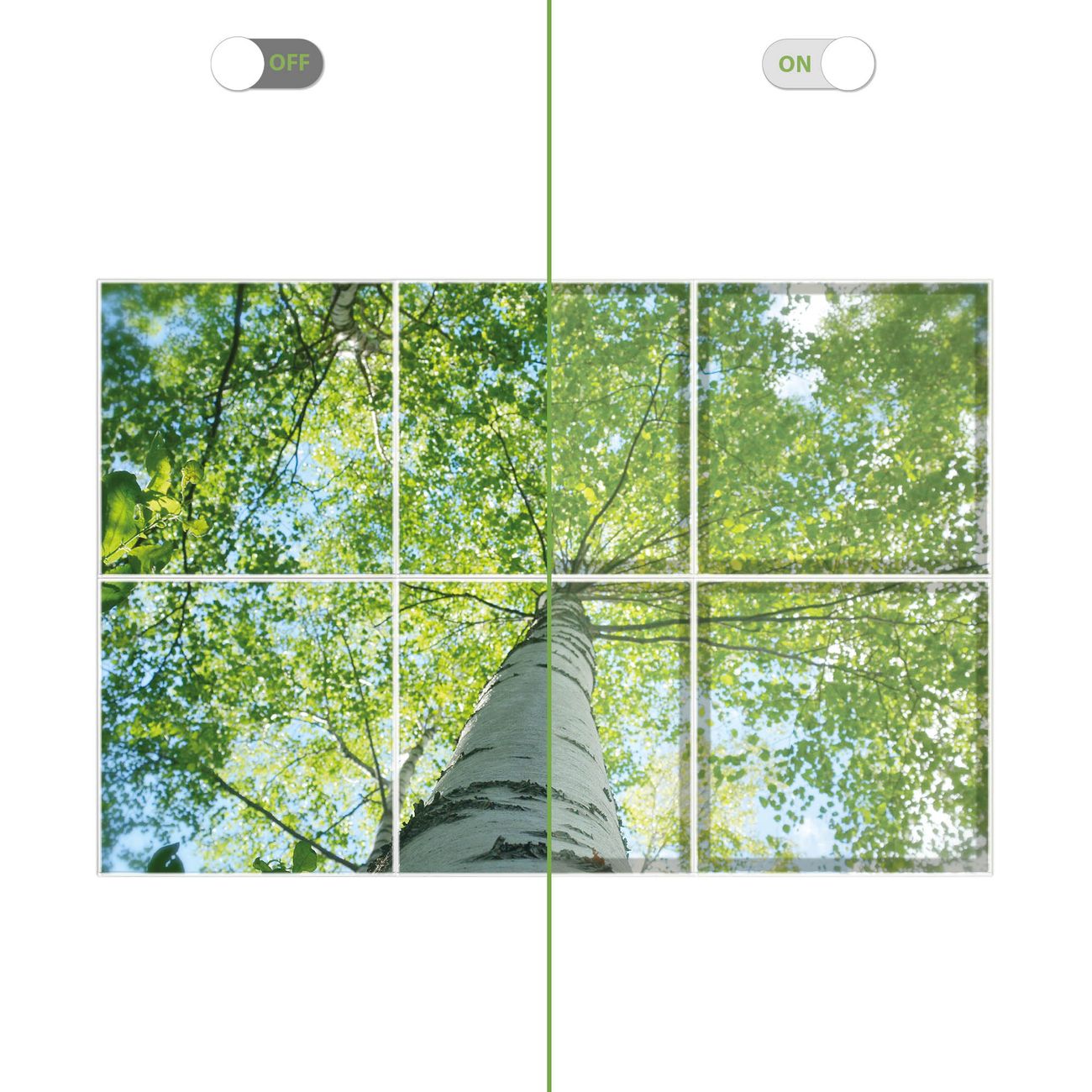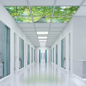 Entdecken Sie unsere vielseitigen Lichtdecken, hier in der Größe 186 x 124cm mit dem Motiv Motiv Zwischen Bäumen 5 - Ihre Beleuchtungslösung für jede Umgebung Beleuchten Sie Ihren Raum nicht nur, sondern schaffen Sie Atmosphäre! Die banjado Lichtdecke verwandelt jeden Ort, ob zu Hause, in Praxen, Büros oder Studios in eine Wohlfühloase. Unsere einzelnen Elemente haben eine genormte Einheitsgröße von 62 x 62cm und können somit in jede gängige Rasterdecken verbaut werden. So finden Sie Ihre passende Ausführung: Gern helfen wir Ihnen, die passende Ausführung zu wählen. Hierfür muss die aktuelle Gegebenheit Ihrer Decke oder Wand beachtet werden. Haben Sie bereits eine Rasterdecke (auch Odenwalddecke genannt)? Hier bestellen Sie lediglich das Motiv + Beleuchtungspanel, denn beides wird in die bereits vorhandene Decke eingelegt. Haben Sie eine glatte Decke mit Lichtauslass oder möchten die Lichtdecke an der Wand befestigen? Hier bestellen Sie bitte Motiv + Beleuchtungspanel + Deckenbefestigung, eine Aufbauanleitung liegt immer bei. Die Lichtdecke kann sowohl an der Decke als auch an der Wand montiert werden, perfekt für kreative Lichtakzente oder alternative Beleuchtungslösungen. Haben Sie bereits eine Lichtdecke und möchten nur das Motiv wechseln? Hier bestellen Sie bitte nur Motiv, der Wechsel ist denkbar einfach. Der Aufbau Ihrer banjado Lichtdecke gestaltet sich unkompliziert, dank einer verständlichen Anleitung, die Ihnen Schritt für Schritt durch den Montageprozess hilft. Für die endgültige Installation und den sicheren Anschluss empfehlen wir die Hinzuziehung eines Fachmanns, um die optimale Funktion und Sicherheit Ihrer Beleuchtung zu gewährleisten. Falls Sie einen Fachmann für die Installation benötigen, geben Sie uns gern Bescheid, wir vermitteln Ihnen gern einen geeigneten Ansprechpartner aus Ihrer Nähe. Steuerung: Steigern Sie Ihr Beleuchtungserlebnis mit der nahtlosen Integration in Ihr Smart Home. Durch die Kompatibilität mit der SmartLife App, Alexa und Google Assistant wird Ihr Smartphone zur zentralen Steuerungseinheit. Ihr Handy fungiert hierbei sozusagen als Fernbedienung. Legen Sie individuelle Lichtszenen in der App fest, die bei Aktivierung über den Wand-Ein-/Ausschalter immer wieder abgerufen werden können ohne Handy. Mit der Szenenfunktion in der Smart App können Sie die Beleuchtung personalisieren und steuern, sodass sie auf Ihre individuellen Bedürfnisse, Tagesrhythmus und Stimmung zugeschnitten ist. Beispielsweise können Sie sich in der Morgendämmerung durch ein sanftes Licht wecken lassen oder das Licht der Praxis werktags um 7 Uhr automatisch einschalten lassen. Dieses kann dann natürlich auch zu einer bestimmten Zeit automatisch ausgeschaltet werden. Motivwahl: Diese einzigartige Lichtdecke zeichnet sich durch ihre Fähigkeit aus, die Lichtfarbe je nach gewähltem Motiv anzupassen - ein Baum wirft ein sanftes grünes Licht, während eine Wolkendecke Ihren Raum in ein beruhigendes blaues Leuchten hüllt. Berücksichtigen Sie dies bitte bei Ihrer Motivauswahl. Sie können das Motiv jederzeit ohne großen Aufwand austauschen, ob nach Jahreszeit oder anderem Anlass, unsere Auswahl lässt kaum Wünsche offen. Wir fertigen Ihnen gern eine personalisierte Lichtdecke mit einem eigenen Motiv oder Logo oder Foto, schreiben Sie uns jederzeit an. Technische Daten: Das Motiv ist auf einer 4mm starken Acrylglas Scheibe aufgebracht, das Gesamtgewicht Ihrer Ausführung beträgt 26,6kg. Die Farbtemperatur lässt sich frei einstellen von 3000 bis 6000 Kelvin, damit können Sie stufenlos zwischen warmweiß, neutralweiß und kaltweiß wählen. Die Gesamtleistung bei Ihrer gewählten Ausführung beträgt 240W. Der Lichtstrom beträgt 3600 Lumen, die Nennspannung 230 V. Die Lichtdecke ist mit Schutzart IP20 für den Innenbereich konzipiert und sollte nicht im Nassbereich verwendet werden.
