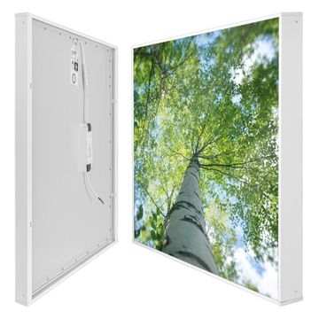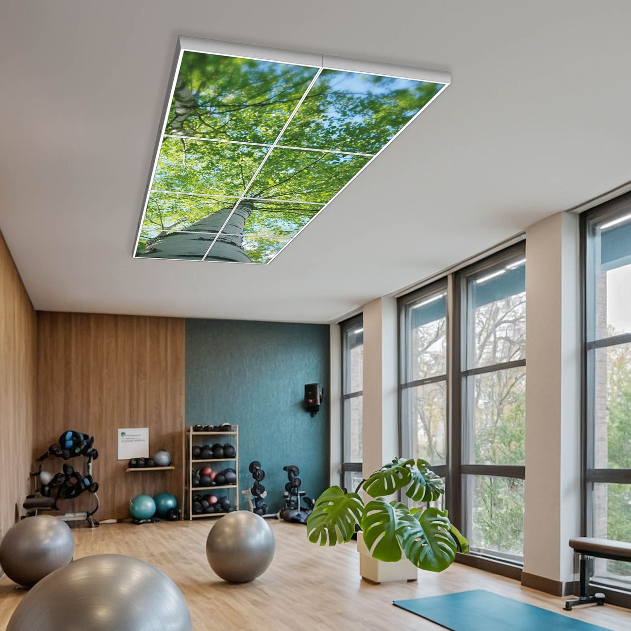 Entdecken Sie unsere vielseitigen Lichtdecken, hier in der Größe 124 x 248cm mit dem Motiv Motiv Zwischen Bäumen 5 - Ihre Beleuchtungslösung für jede Umgebung Beleuchten Sie Ihren Raum nicht nur, sondern schaffen Sie Atmosphäre! Die banjado Lichtdecke verwandelt jeden Ort, ob zu Hause, in Praxen, Büros oder Studios in eine Wohlfühloase. Unsere einzelnen Elemente haben eine genormte Einheitsgröße von 62 x 62cm und können somit in jede gängige Rasterdecken verbaut werden. So finden Sie Ihre passende Ausführung: Gern helfen wir Ihnen, die passende Ausführung zu wählen. Hierfür muss die aktuelle Gegebenheit Ihrer Decke oder Wand beachtet werden. Haben Sie bereits eine Rasterdecke (auch Odenwalddecke genannt)? Hier bestellen Sie lediglich das Motiv + Beleuchtungspanel, denn beides wird in die bereits vorhandene Decke eingelegt. Haben Sie eine glatte Decke mit Lichtauslass oder möchten die Lichtdecke an der Wand befestigen? Hier bestellen Sie bitte Motiv + Beleuchtungspanel + Deckenbefestigung, eine Aufbauanleitung liegt immer bei. Die Lichtdecke kann sowohl an der Decke als auch an der Wand montiert werden, perfekt für kreative Lichtakzente oder alternative Beleuchtungslösungen. Haben Sie bereits eine Lichtdecke und möchten nur das Motiv wechseln? Hier bestellen Sie bitte nur Motiv, der Wechsel ist denkbar einfach. Der Aufbau Ihrer banjado Lichtdecke gestaltet sich unkompliziert, dank einer verständlichen Anleitung, die Ihnen Schritt für Schritt durch den Montageprozess hilft. Für die endgültige Installation und den sicheren Anschluss empfehlen wir die Hinzuziehung eines Fachmanns, um die optimale Funktion und Sicherheit Ihrer Beleuchtung zu gewährleisten. Falls Sie einen Fachmann für die Installation benötigen, geben Sie uns gern Bescheid, wir vermitteln Ihnen gern einen geeigneten Ansprechpartner aus Ihrer Nähe. Steuerung: Steigern Sie Ihr Beleuchtungserlebnis mit der nahtlosen Integration in Ihr Smart Home. Durch die Kompatibilität mit der SmartLife App, Alexa und Google Assistant wird Ihr Smartphone zur zentralen Steuerungseinheit. Ihr Handy fungiert hierbei sozusagen als Fernbedienung. Legen Sie individuelle Lichtszenen in der App fest, die bei Aktivierung über den Wand-Ein-/Ausschalter immer wieder abgerufen werden können ohne Handy. Mit der Szenenfunktion in der Smart App können Sie die Beleuchtung personalisieren und steuern, sodass sie auf Ihre individuellen Bedürfnisse, Tagesrhythmus und Stimmung zugeschnitten ist. Beispielsweise können Sie sich in der Morgendämmerung durch ein sanftes Licht wecken lassen oder das Licht der Praxis werktags um 7 Uhr automatisch einschalten lassen. Dieses kann dann natürlich auch zu einer bestimmten Zeit automatisch ausgeschaltet werden. Motivwahl: Diese einzigartige Lichtdecke zeichnet sich durch ihre Fähigkeit aus, die Lichtfarbe je nach gewähltem Motiv anzupassen - ein Baum wirft ein sanftes grünes Licht, während eine Wolkendecke Ihren Raum in ein beruhigendes blaues Leuchten hüllt. Berücksichtigen Sie dies bitte bei Ihrer Motivauswahl. Sie können das Motiv jederzeit ohne großen Aufwand austauschen, ob nach Jahreszeit oder anderem Anlass, unsere Auswahl lässt kaum Wünsche offen. Wir fertigen Ihnen gern eine personalisierte Lichtdecke mit einem eigenen Motiv oder Logo oder Foto, schreiben Sie uns jederzeit an. Technische Daten: Das Motiv ist auf einer 4mm starken Acrylglas Scheibe aufgebracht, das Gesamtgewicht Ihrer Ausführung beträgt 39,4kg. Die Farbtemperatur lässt sich frei einstellen von 3000 bis 6000 Kelvin, damit können Sie stufenlos zwischen warmweiß, neutralweiß und kaltweiß wählen. Die Gesamtleistung bei Ihrer gewählten Ausführung beträgt 320W. Der Lichtstrom beträgt 3600 Lumen, die Nennspannung 230 V. Die Lichtdecke ist mit Schutzart IP20 für den Innenbereich konzipiert und sollte nicht im Nassbereich verwendet werden.