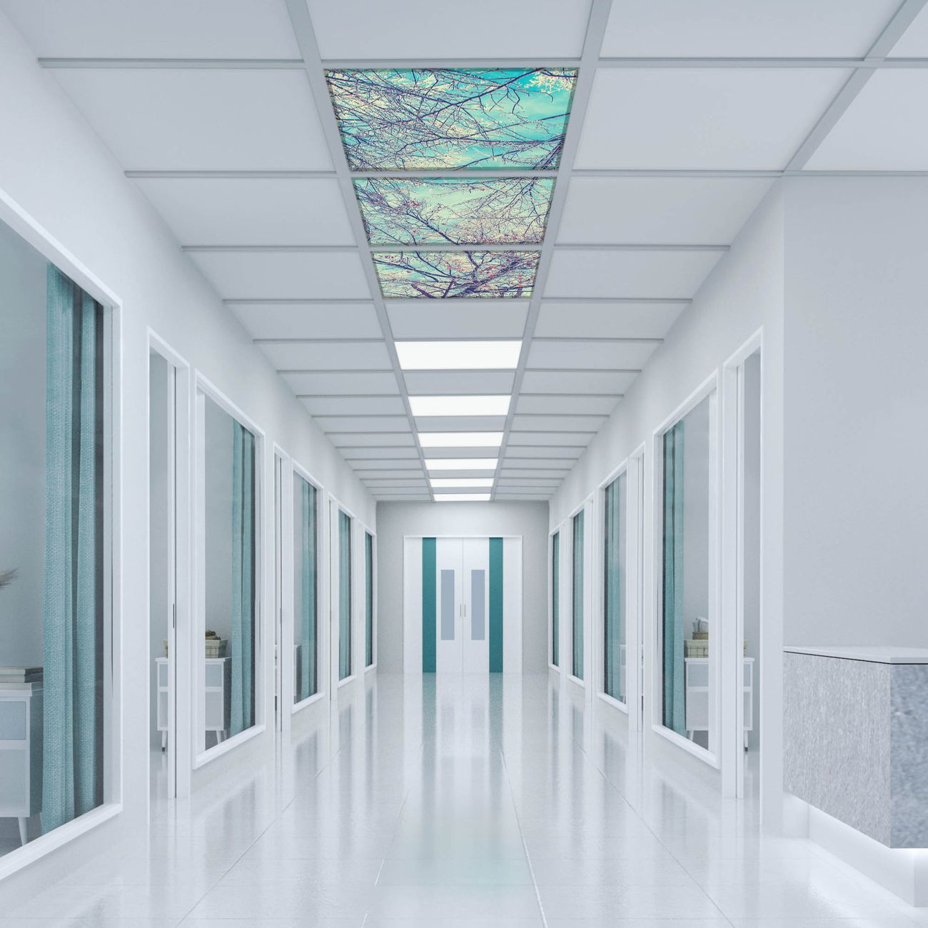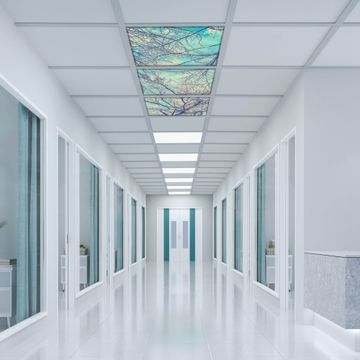 Entdecken Sie unsere vielseitigen Lichtdecken, hier in der Größe 186 x 62cm mit dem Motiv Motiv Zwischen Bäumen 8 - Ihre Beleuchtungslösung für jede Umgebung Beleuchten Sie Ihren Raum nicht nur, sondern schaffen Sie Atmosphäre! Die banjado Lichtdecke verwandelt jeden Ort, ob zu Hause, in Praxen, Büros oder Studios in eine Wohlfühloase. Unsere einzelnen Elemente haben eine genormte Einheitsgröße von 62 x 62cm und können somit in jede gängige Rasterdecken verbaut werden. So finden Sie Ihre passende Ausführung: Gern helfen wir Ihnen, die passende Ausführung zu wählen. Hierfür muss die aktuelle Gegebenheit Ihrer Decke oder Wand beachtet werden. Haben Sie bereits eine Rasterdecke (auch Odenwalddecke genannt)? Hier bestellen Sie lediglich das Motiv + Beleuchtungspanel, denn beides wird in die bereits vorhandene Decke eingelegt. Haben Sie eine glatte Decke mit Lichtauslass oder möchten die Lichtdecke an der Wand befestigen? Hier bestellen Sie bitte Motiv + Beleuchtungspanel + Deckenbefestigung, eine Aufbauanleitung liegt immer bei. Die Lichtdecke kann sowohl an der Decke als auch an der Wand montiert werden, perfekt für kreative Lichtakzente oder alternative Beleuchtungslösungen. Haben Sie bereits eine Lichtdecke und möchten nur das Motiv wechseln? Hier bestellen Sie bitte nur Motiv, der Wechsel ist denkbar einfach. Der Aufbau Ihrer banjado Lichtdecke gestaltet sich unkompliziert, dank einer verständlichen Anleitung, die Ihnen Schritt für Schritt durch den Montageprozess hilft. Für die endgültige Installation und den sicheren Anschluss empfehlen wir die Hinzuziehung eines Fachmanns, um die optimale Funktion und Sicherheit Ihrer Beleuchtung zu gewährleisten. Falls Sie einen Fachmann für die Installation benötigen, geben Sie uns gern Bescheid, wir vermitteln Ihnen gern einen geeigneten Ansprechpartner aus Ihrer Nähe. Steuerung: Steigern Sie Ihr Beleuchtungserlebnis mit der nahtlosen Integration in Ihr Smart Home. Durch die Kompatibilität mit der SmartLife App, Alexa und Google Assistant wird Ihr Smartphone zur zentralen Steuerungseinheit. Ihr Handy fungiert hierbei sozusagen als Fernbedienung. Legen Sie individuelle Lichtszenen in der App fest, die bei Aktivierung über den Wand-Ein-/Ausschalter immer wieder abgerufen werden können ohne Handy. Mit der Szenenfunktion in der Smart App können Sie die Beleuchtung personalisieren und steuern, sodass sie auf Ihre individuellen Bedürfnisse, Tagesrhythmus und Stimmung zugeschnitten ist. Beispielsweise können Sie sich in der Morgendämmerung durch ein sanftes Licht wecken lassen oder das Licht der Praxis werktags um 7 Uhr automatisch einschalten lassen. Dieses kann dann natürlich auch zu einer bestimmten Zeit automatisch ausgeschaltet werden. Motivwahl: Diese einzigartige Lichtdecke zeichnet sich durch ihre Fähigkeit aus, die Lichtfarbe je nach gewähltem Motiv anzupassen - ein Baum wirft ein sanftes grünes Licht, während eine Wolkendecke Ihren Raum in ein beruhigendes blaues Leuchten hüllt. Berücksichtigen Sie dies bitte bei Ihrer Motivauswahl. Sie können das Motiv jederzeit ohne großen Aufwand austauschen, ob nach Jahreszeit oder anderem Anlass, unsere Auswahl lässt kaum Wünsche offen. Wir fertigen Ihnen gern eine personalisierte Lichtdecke mit einem eigenen Motiv oder Logo oder Foto, schreiben Sie uns jederzeit an. Technische Daten: Das Motiv ist auf einer 4mm starken Acrylglas Scheibe aufgebracht, das Gesamtgewicht Ihrer Ausführung beträgt 6,8kg. Die Farbtemperatur lässt sich frei einstellen von 3000 bis 6000 Kelvin, damit können Sie stufenlos zwischen warmweiß, neutralweiß und kaltweiß wählen. Die Gesamtleistung bei Ihrer gewählten Ausführung beträgt 120W. Der Lichtstrom beträgt 3600 Lumen, die Nennspannung 230 V. Die Lichtdecke ist mit Schutzart IP20 für den Innenbereich konzipiert und sollte nicht im Nassbereich verwendet werden.