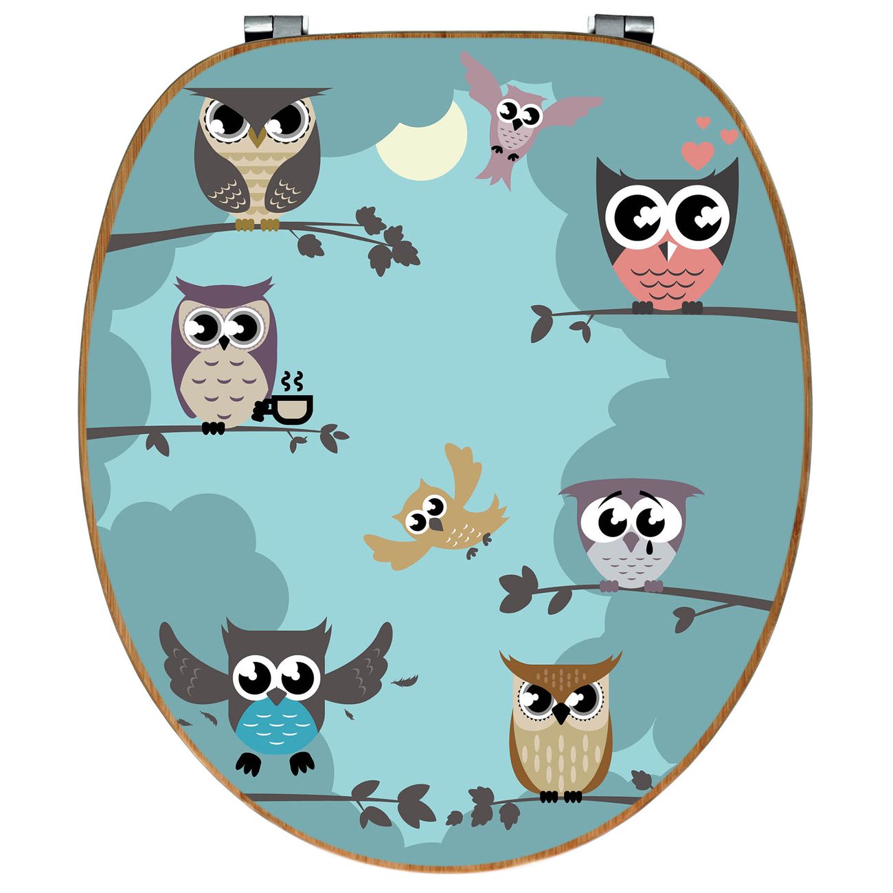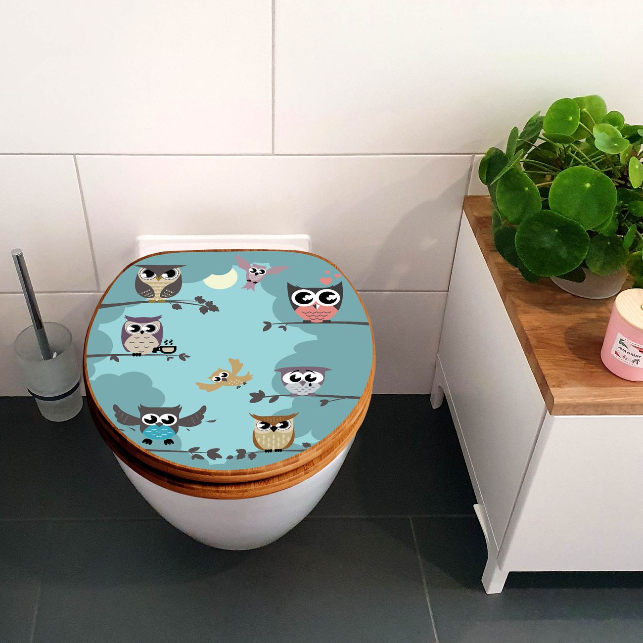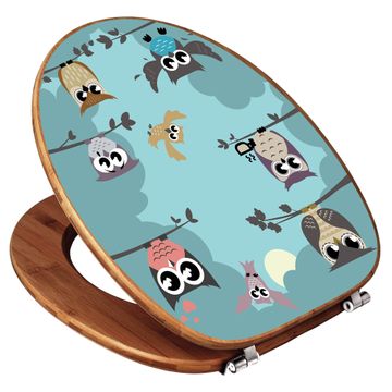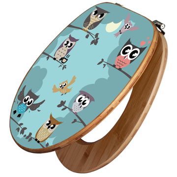 Design WC-Sitz Bambus Holz Motiv Acht Eulen