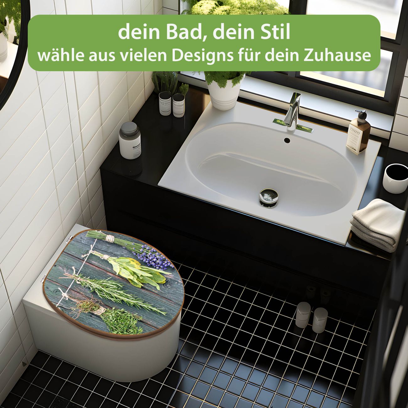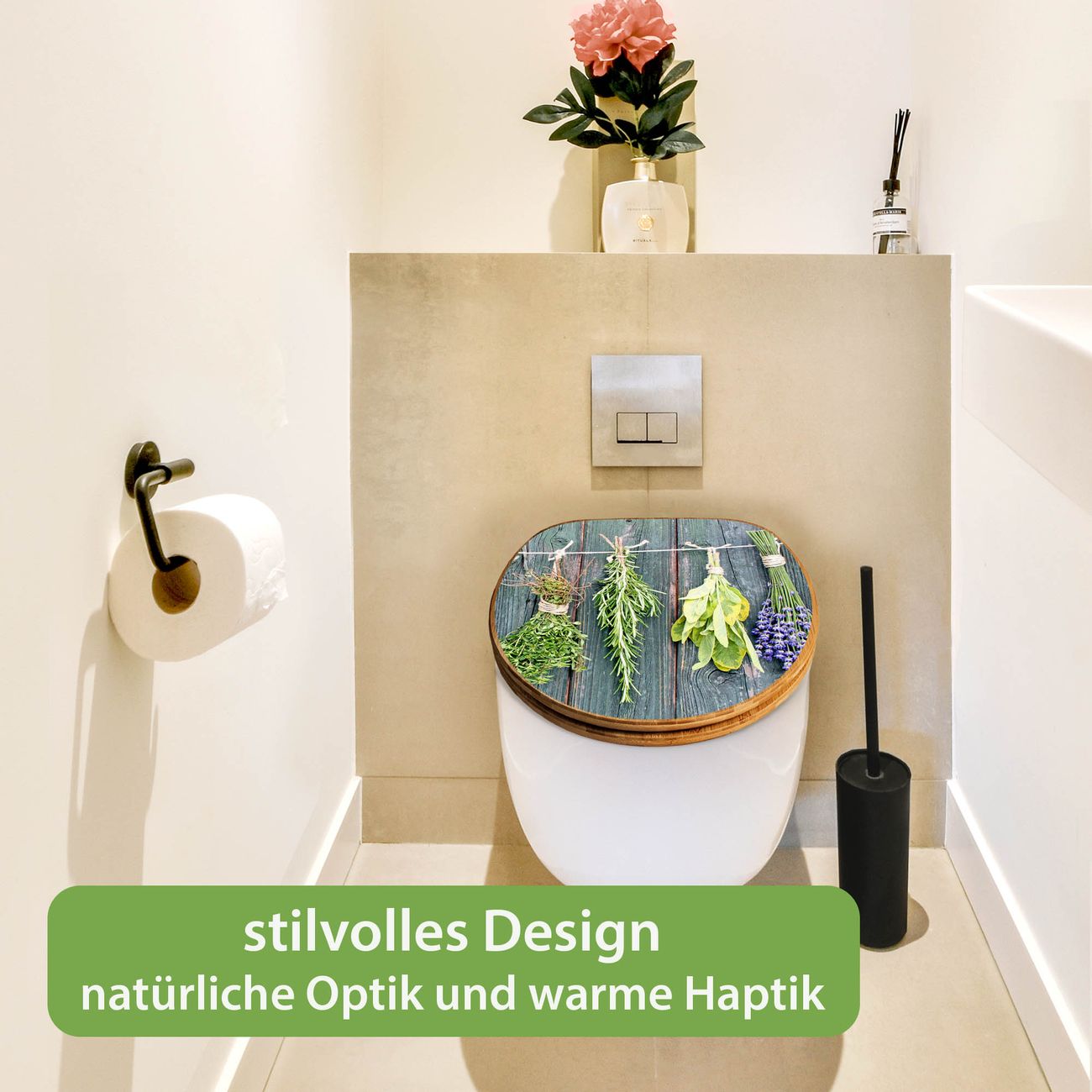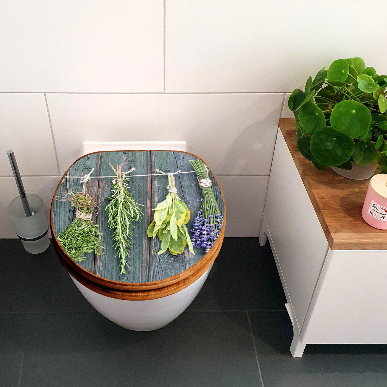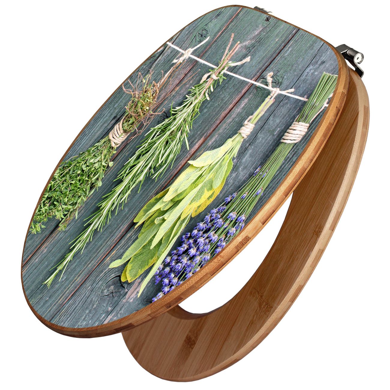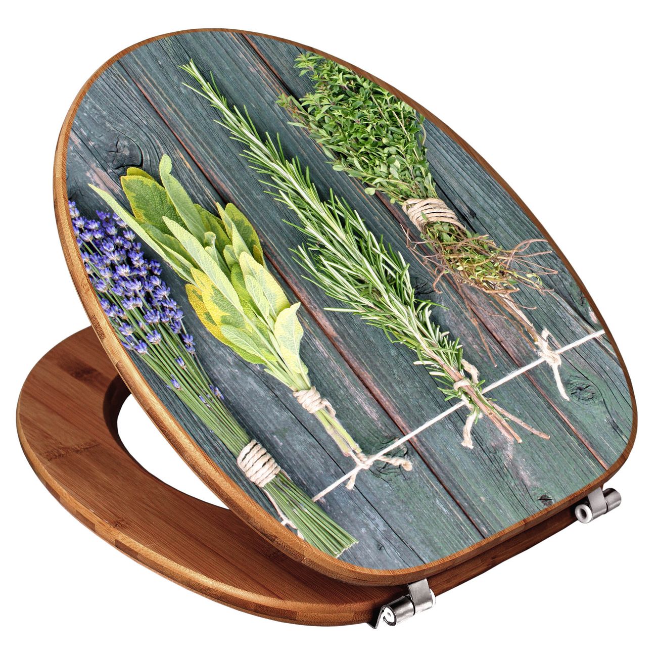 Design WC-Sitz Bambus Holz Motiv Acht Kräuter