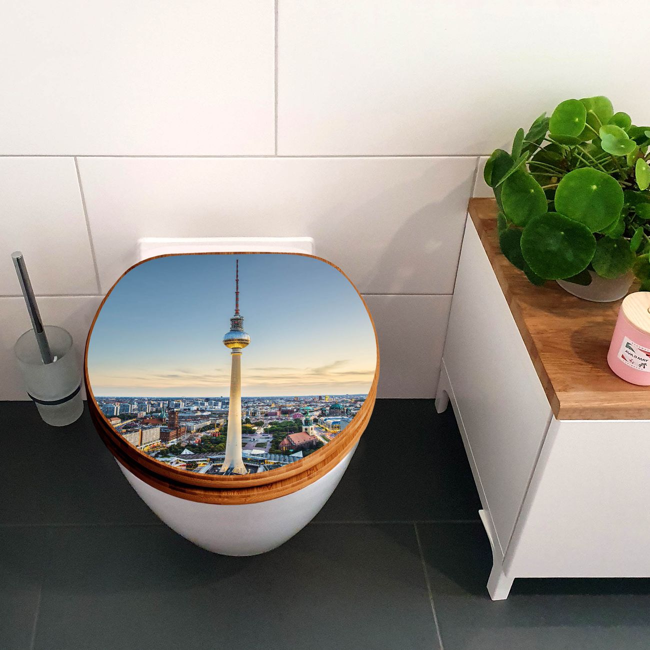 Design WC-Sitz Bambus Holz Motiv Alexanderplatz