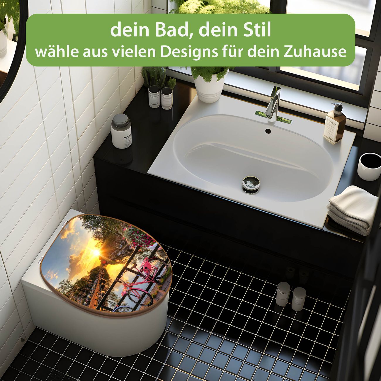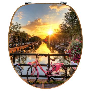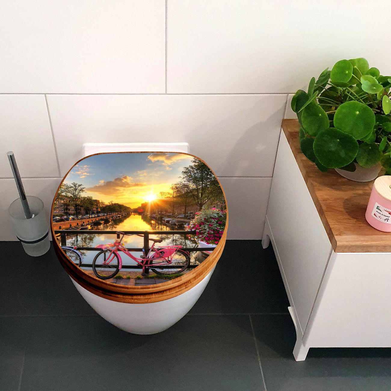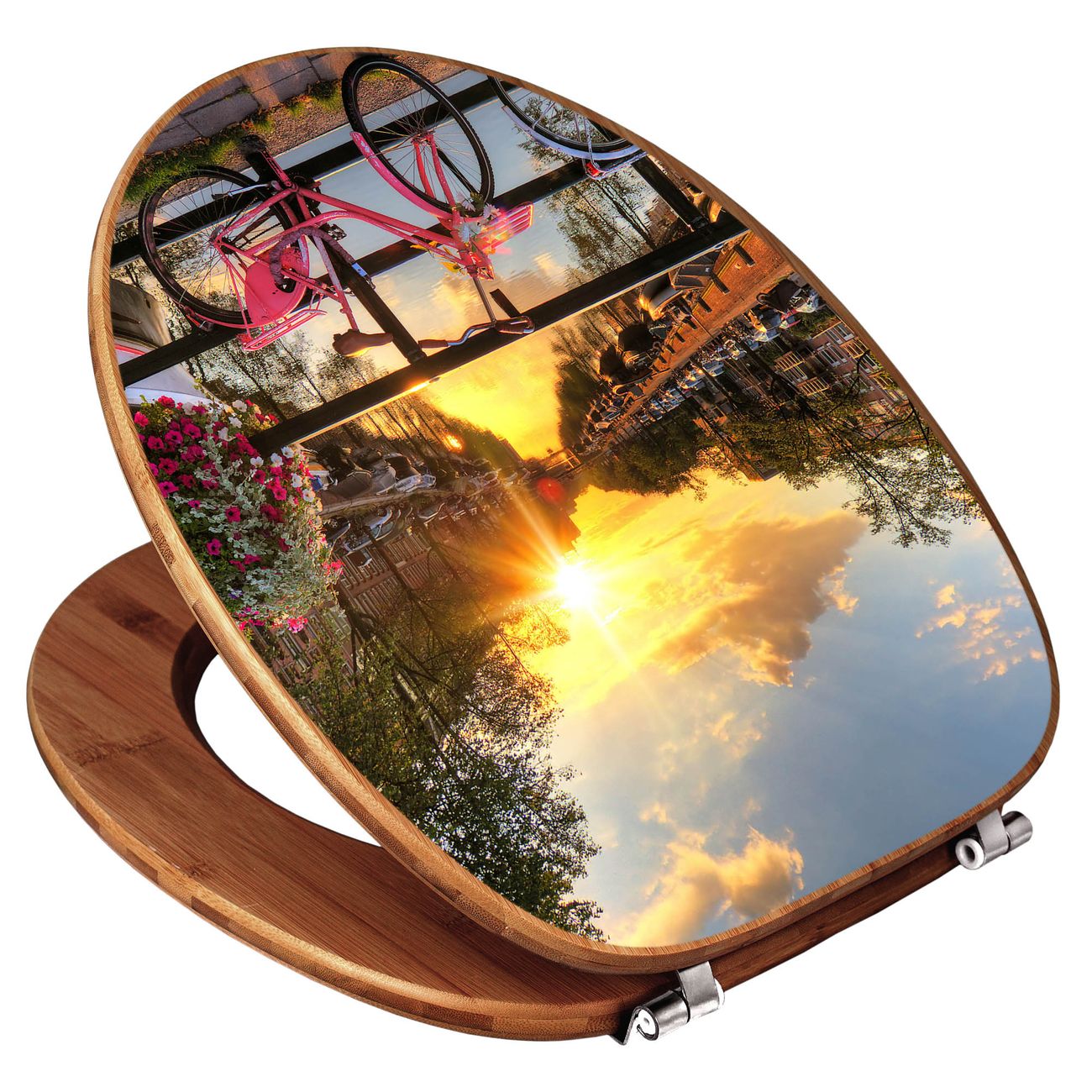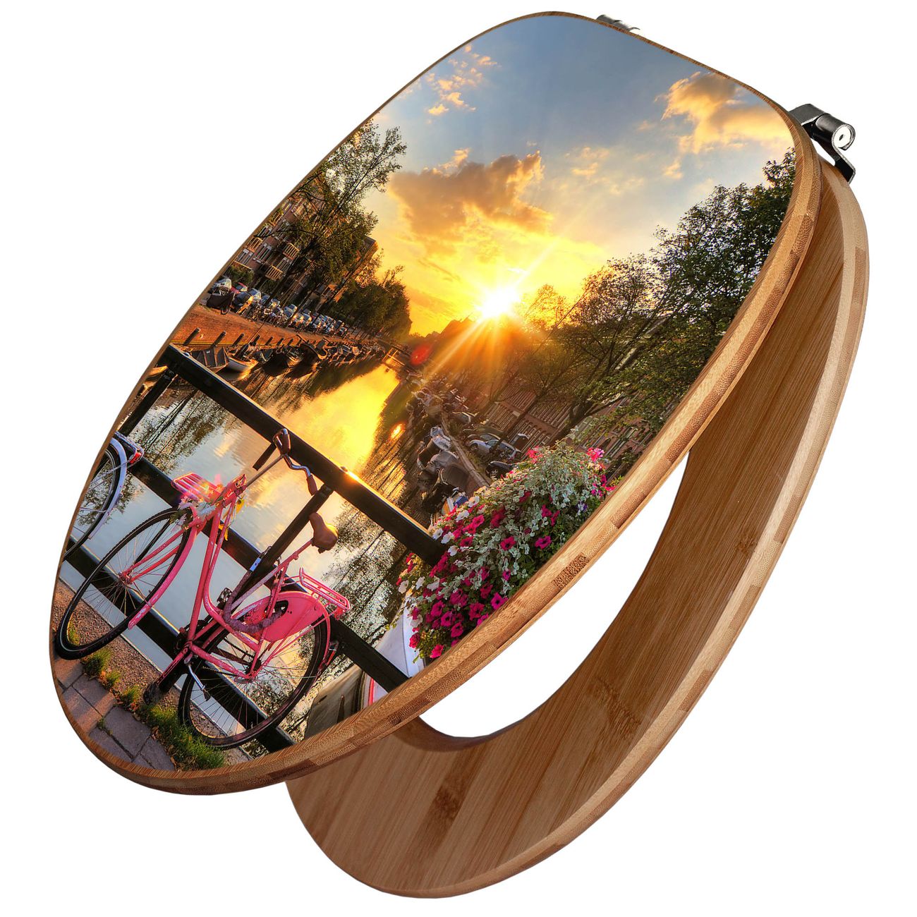 Design WC-Sitz Bambus Holz Motiv Amsterdam Mit Rad