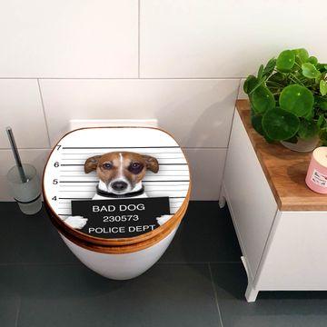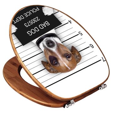 Design WC-Sitz Bambus Holz Motiv Bad Dog Jack Russel