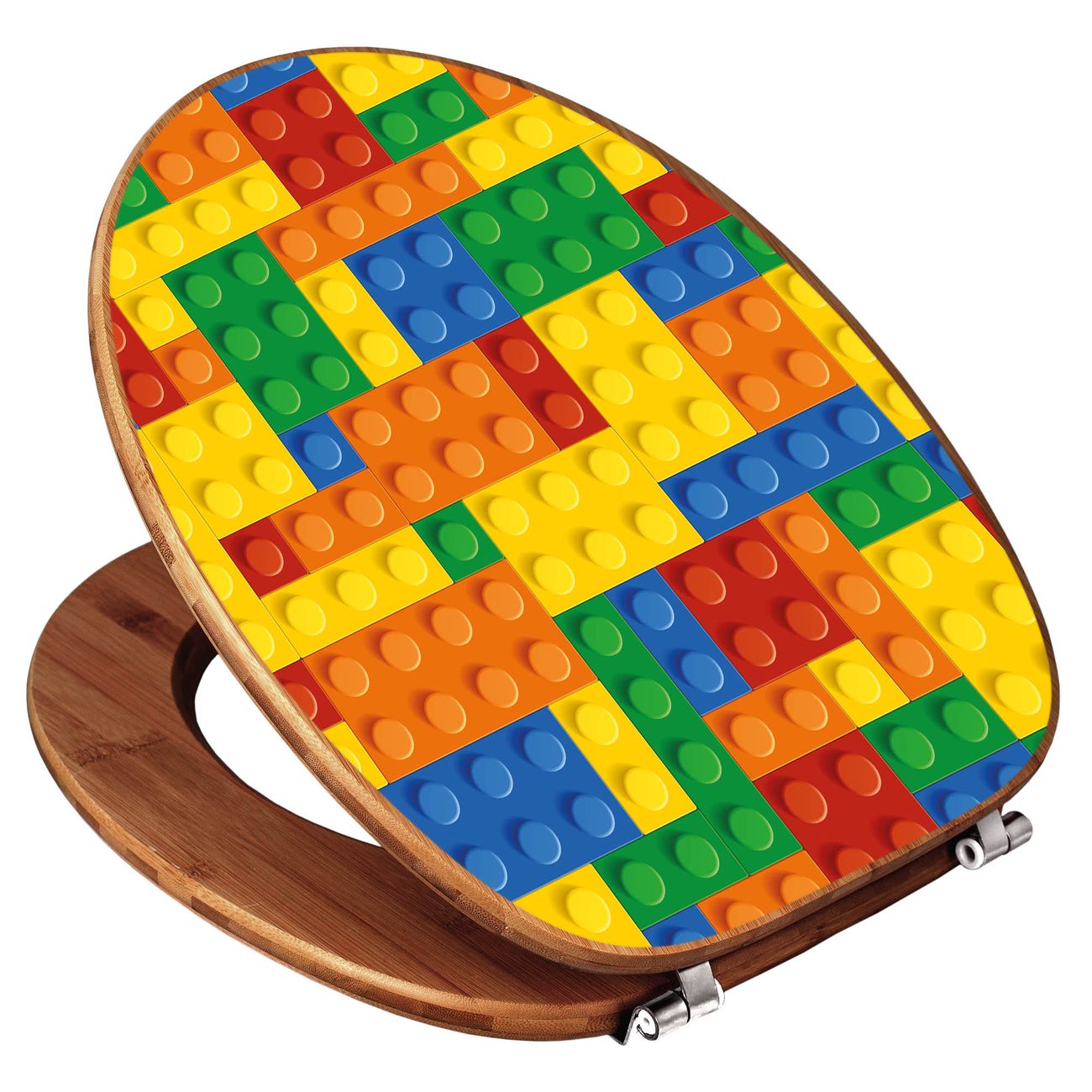 Design WC-Sitz Bambus Holz Motiv Bausteine