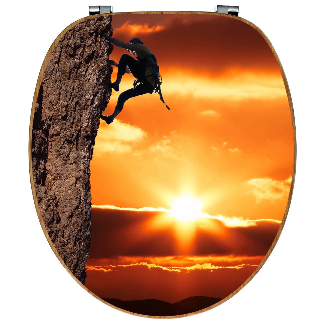 Design WC-Sitz Bambus Holz Motiv Bergsteiger