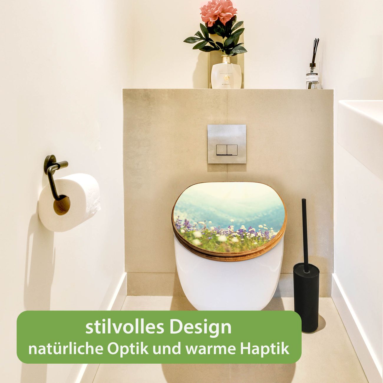 Design WC-Sitz Bambus Holz Motiv Bergwiese