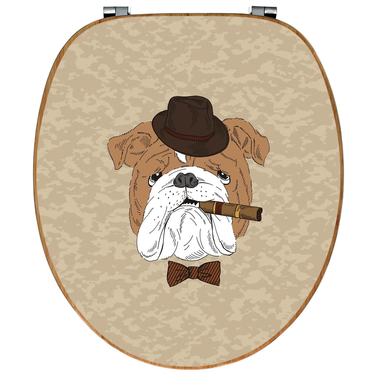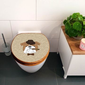Mit dem banjado Toilettensitz in Bambus verbinden Sie Design und Funktionalität. Sie erhalten den WC-Sitz mit bewährt schwerer Holz Qualität und Universal Scharnieren. Das Motiv Motiv Big Daddy besteht aus einer schutzlaminierten Motivfolie, die durch das Schutzlaminat zusätzlich vor Kratzern schützt. Durch diesen Motivdruck wird der WC-Sitz zu einem Blickfang in Ihrem Bad.