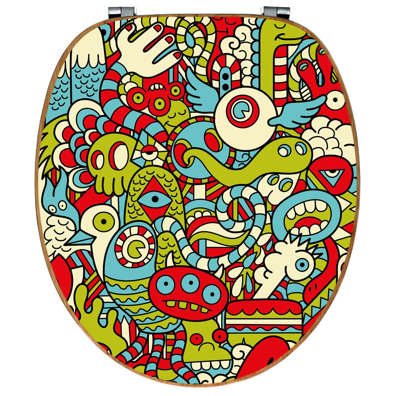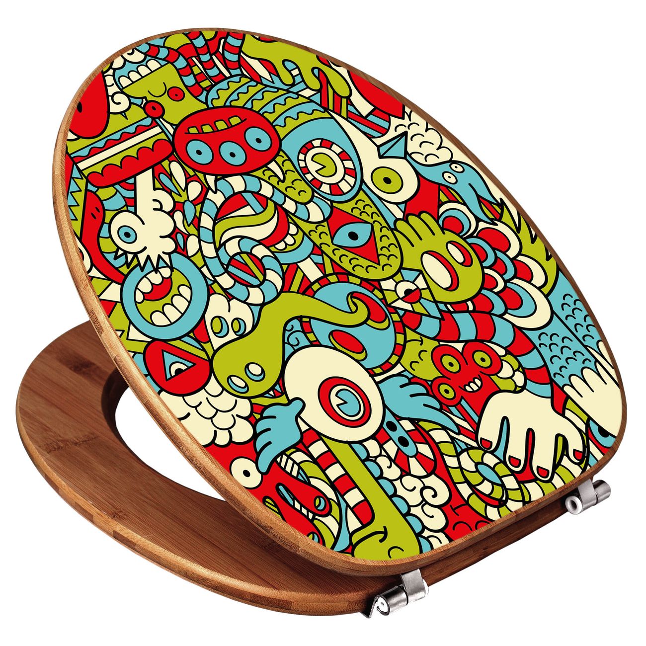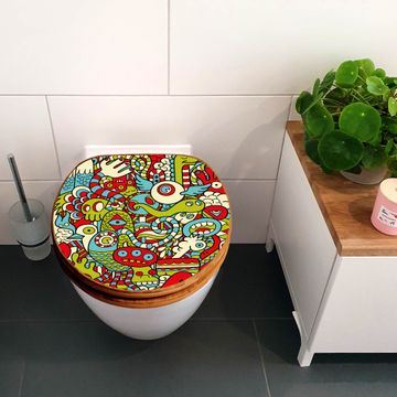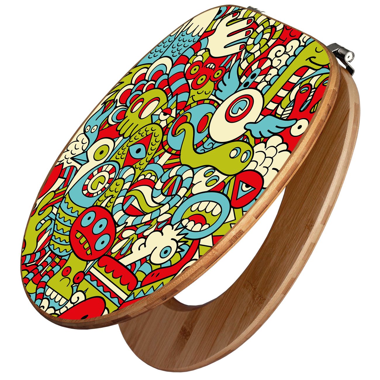 Design WC-Sitz Bambus Holz Motiv Birds Worms Freaks