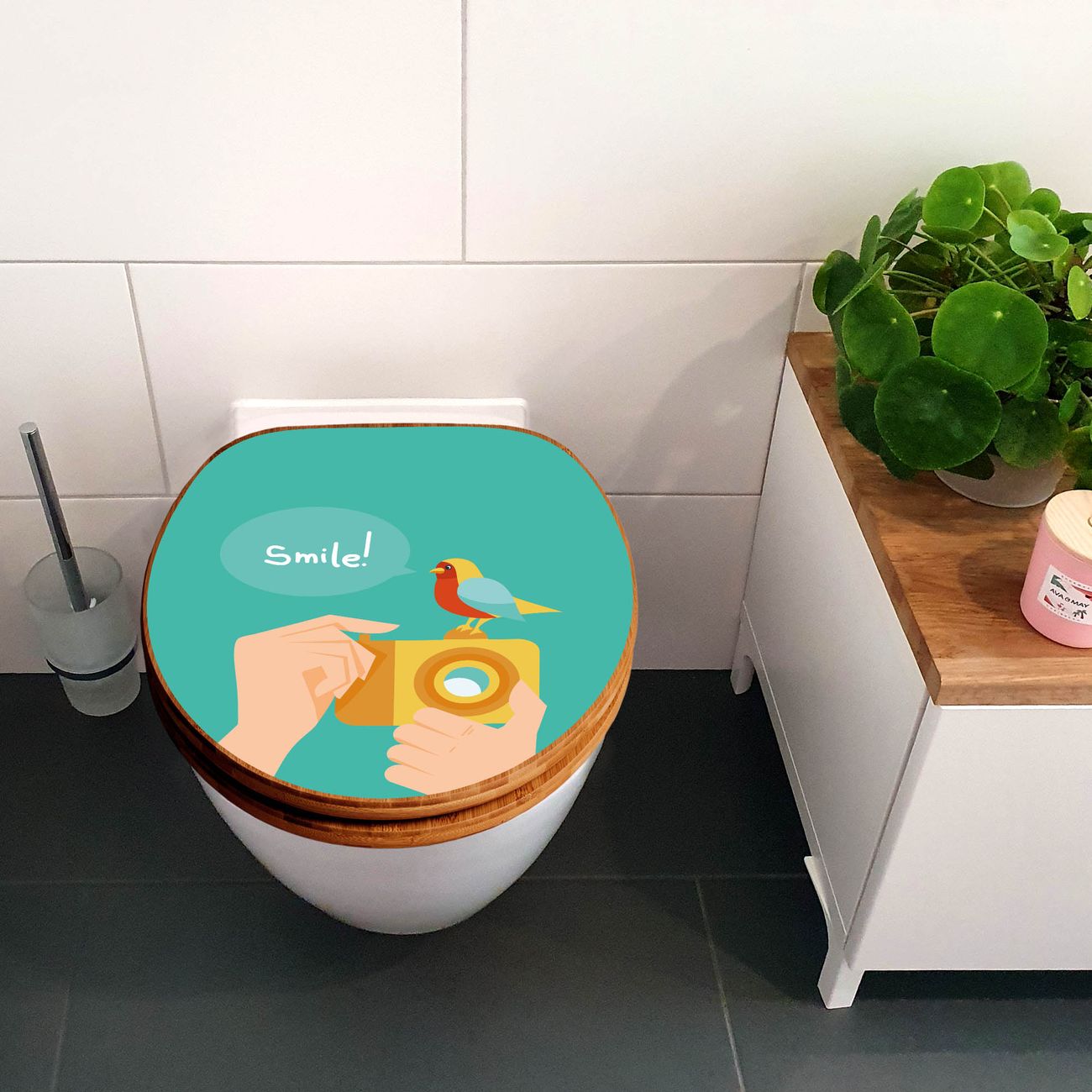 Design WC-Sitz Bambus Holz Motiv Bitte Lächeln 2