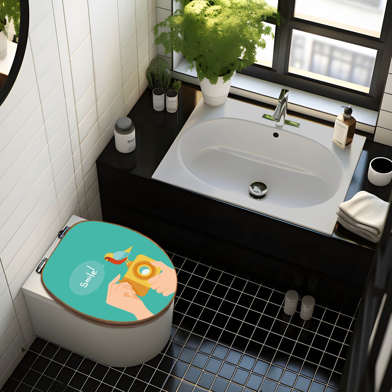 Mit dem banjado Toilettensitz in Bambus verbinden Sie Design und Funktionalität. Sie erhalten den WC-Sitz mit bewährt schwerer Holz Qualität und Universal Scharnieren. Das Motiv Motiv Bitte Lächeln 2 besteht aus einer schutzlaminierten Motivfolie, die durch das Schutzlaminat zusätzlich vor Kratzern schützt. Durch diesen Motivdruck wird der WC-Sitz zu einem Blickfang in Ihrem Bad.