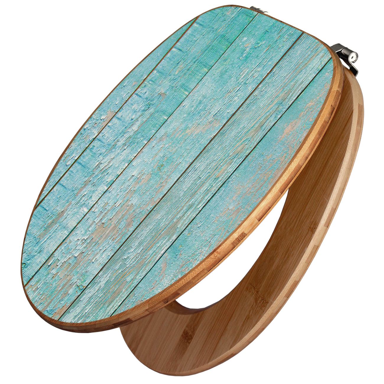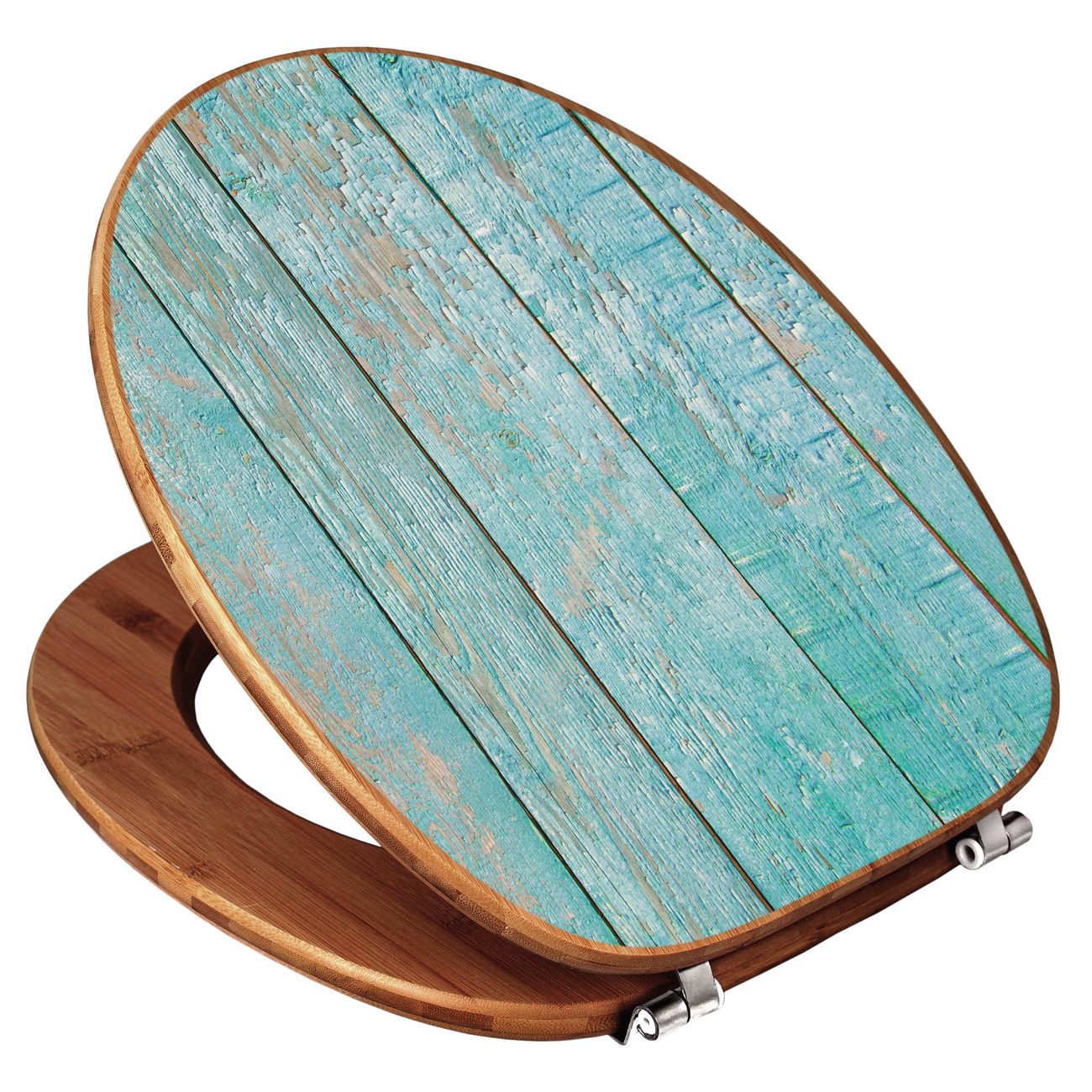 Mit dem banjado Toilettensitz in Bambus verbinden Sie Design und Funktionalität. Sie erhalten den WC-Sitz mit bewährt schwerer Holz Qualität und Universal Scharnieren. Das Motiv Motiv Blaue Planken besteht aus einer schutzlaminierten Motivfolie, die durch das Schutzlaminat zusätzlich vor Kratzern schützt. Durch diesen Motivdruck wird der WC-Sitz zu einem Blickfang in Ihrem Bad.