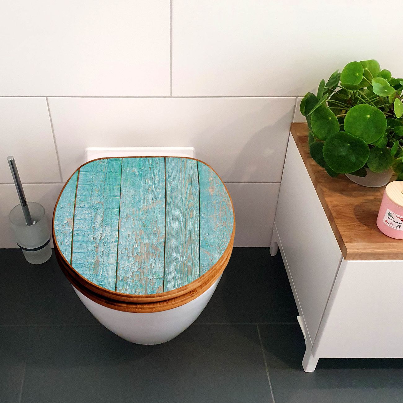 Design WC-Sitz Bambus Holz Motiv Blaue Planken