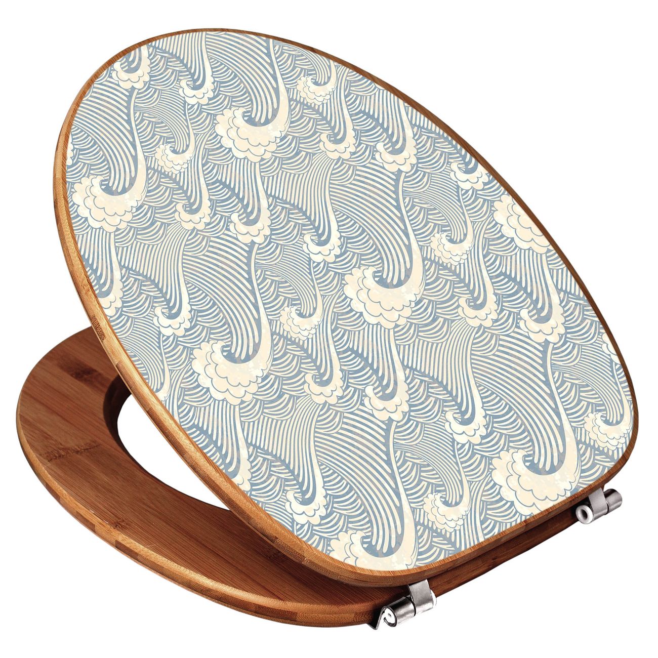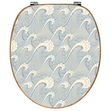 Design WC-Sitz Bambus Holz Motiv Blaue Wellen
