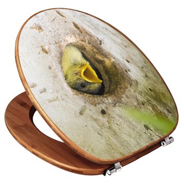 Design WC-Sitz Bambus Holz Motiv Blaumeise