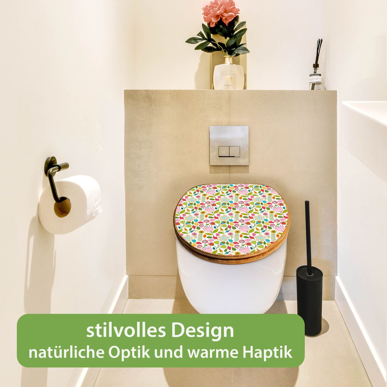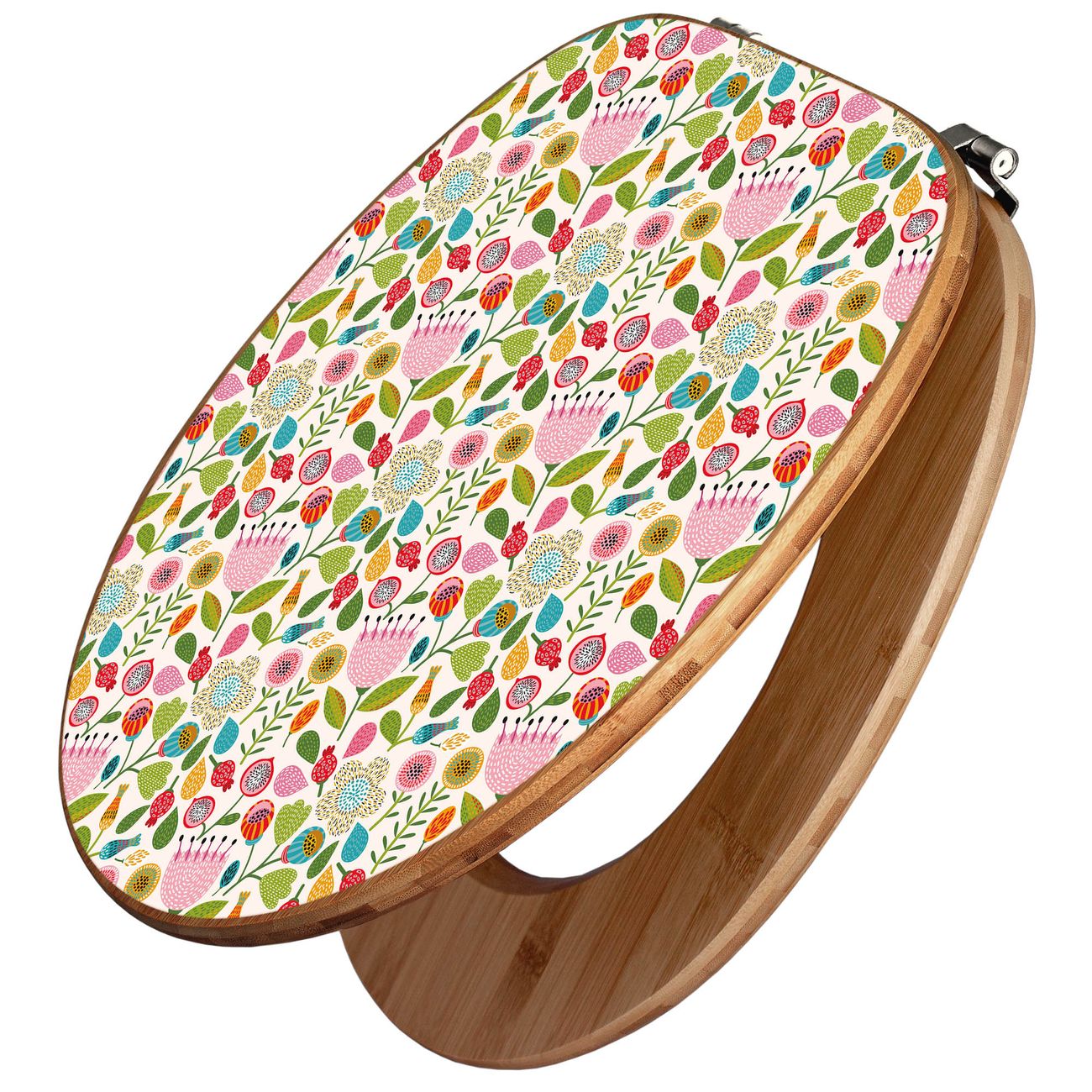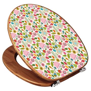Design WC-Sitz Bambus Holz Motiv Blumen Naiv