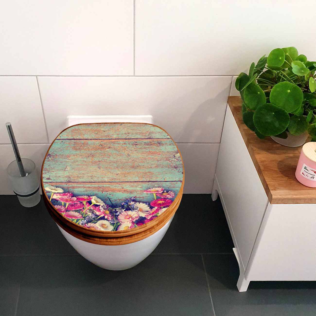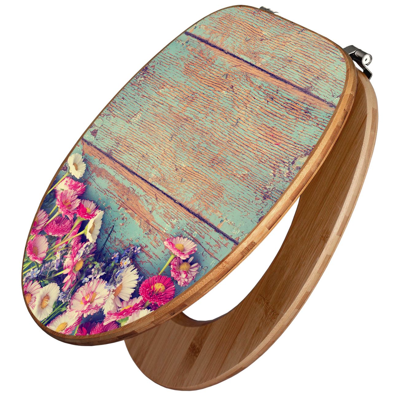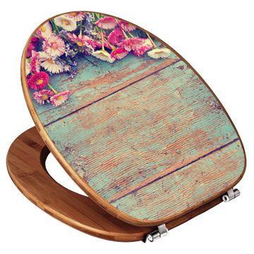 Design WC-Sitz Bambus Holz Motiv Blumenpfücken
