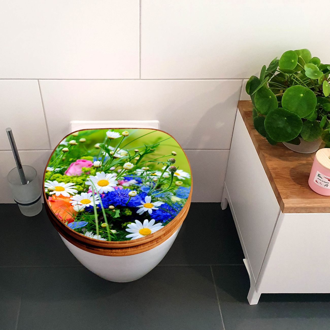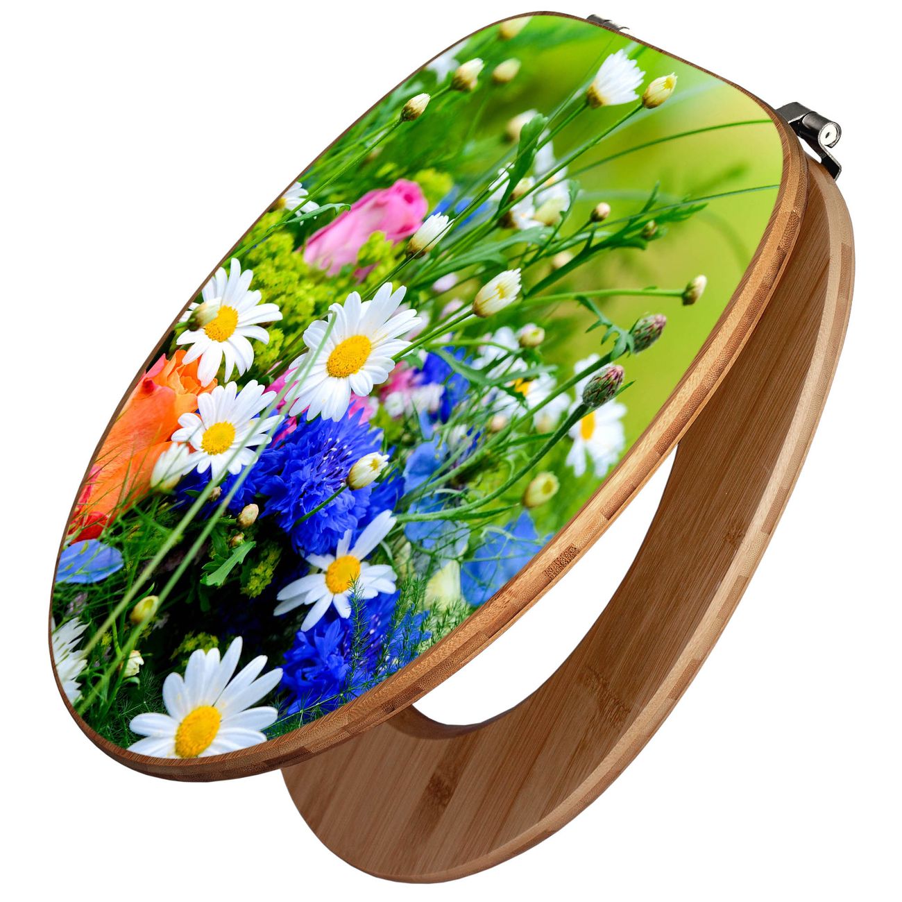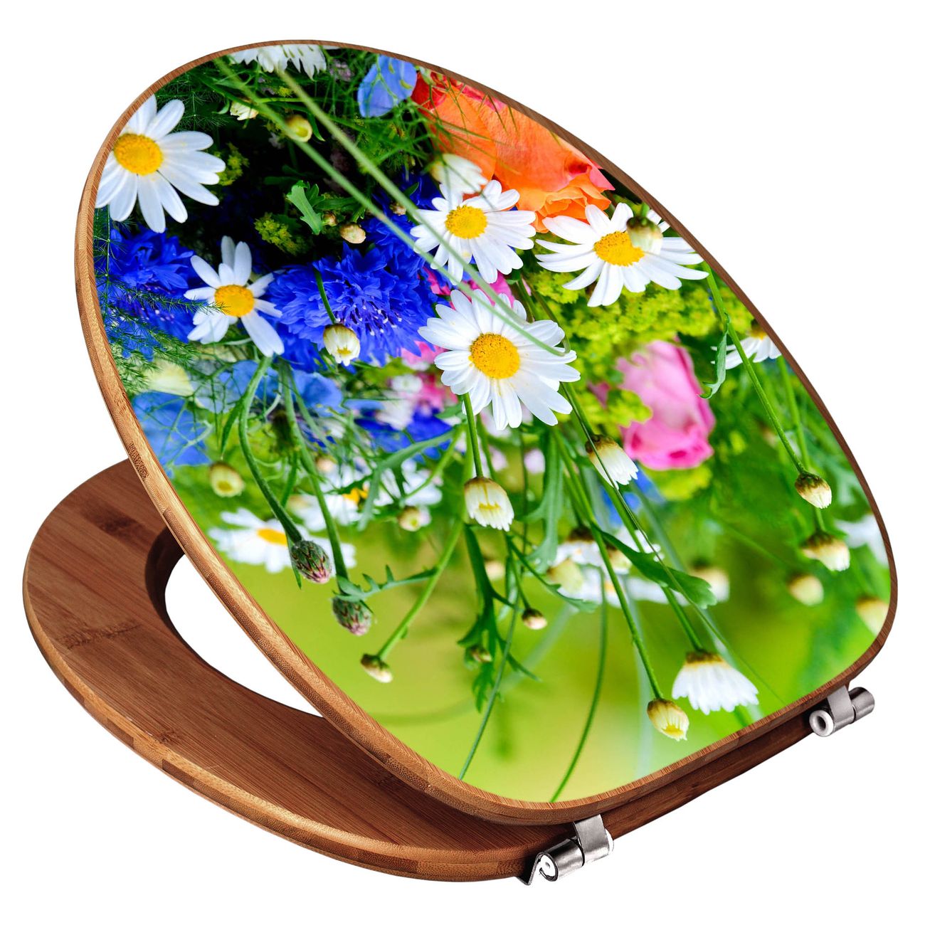 Design WC-Sitz Bambus Holz Motiv Blumenstrauß