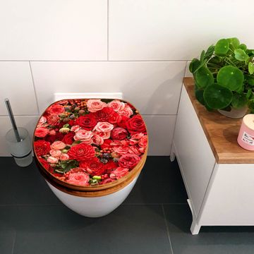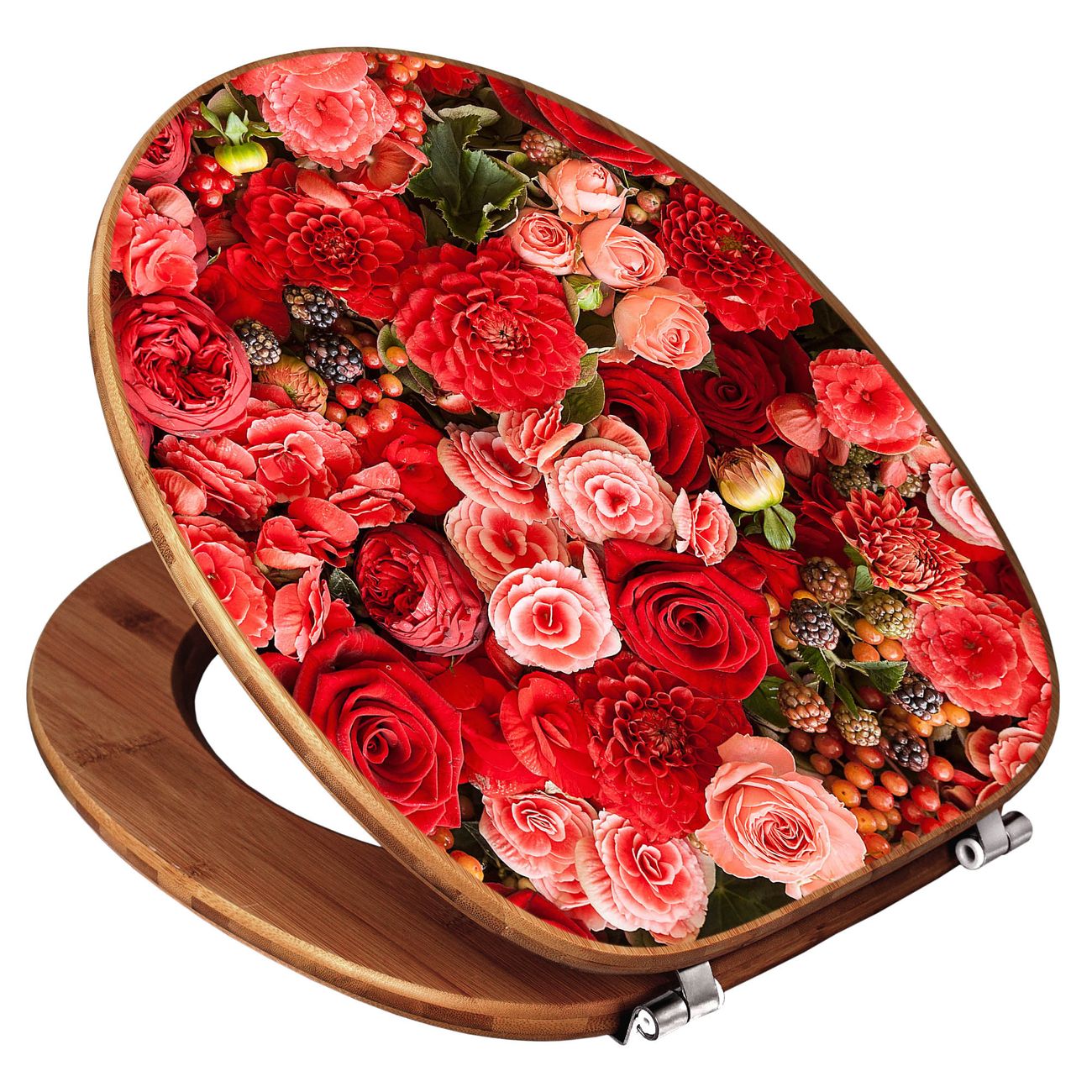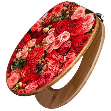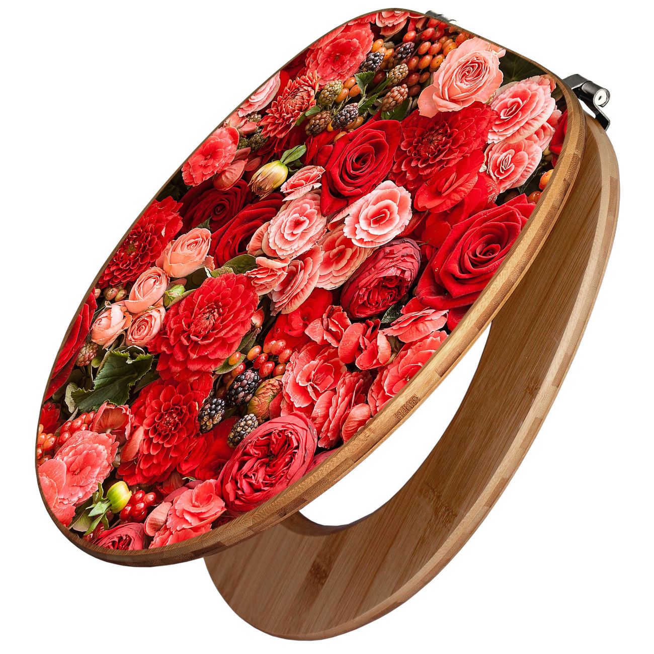 Design WC-Sitz Bambus Holz Motiv Bouquet in Rot
