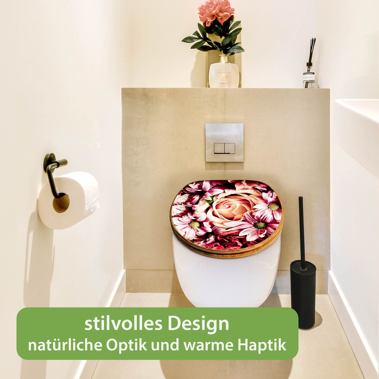 Design WC-Sitz Bambus Holz Motiv Brautstrauss