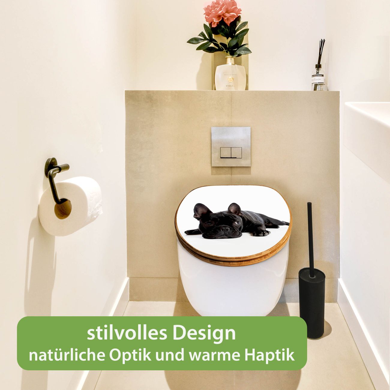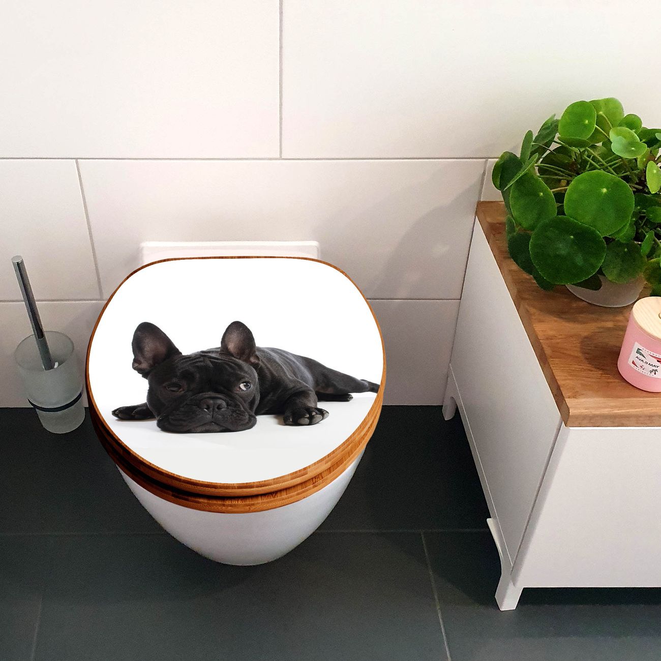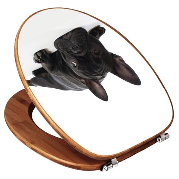 Design WC-Sitz Bambus Holz Motiv Bulldogge