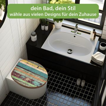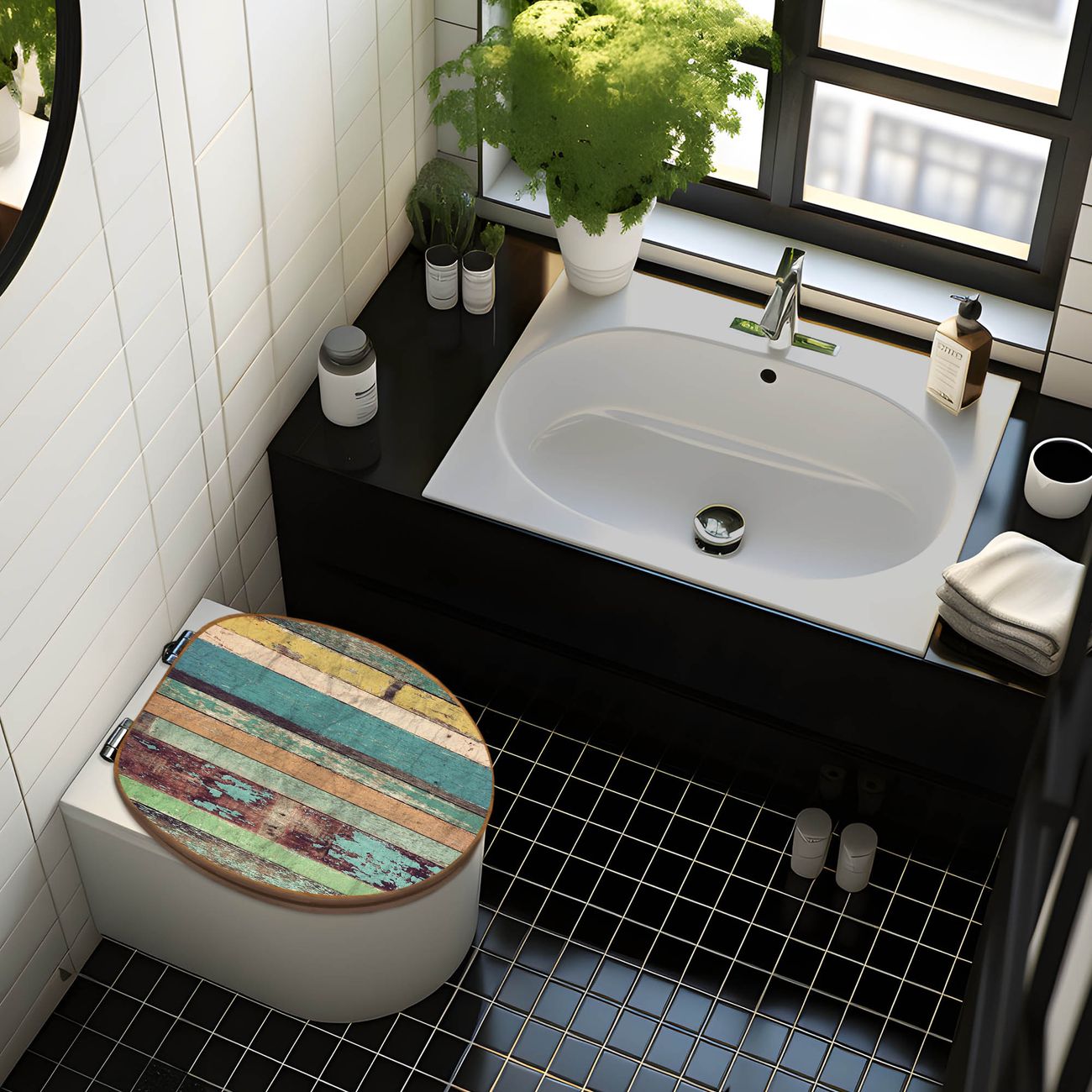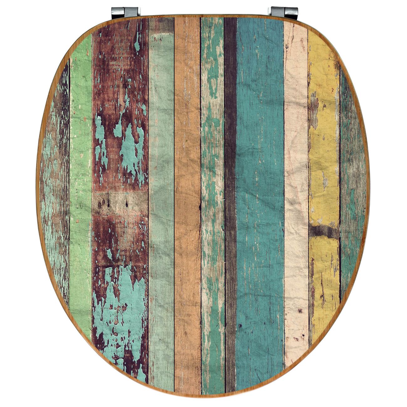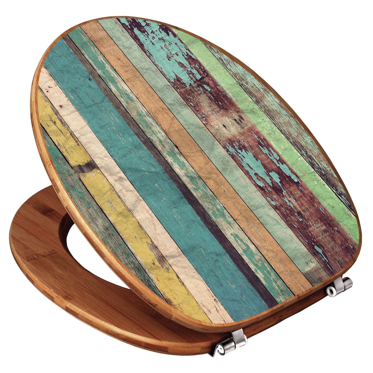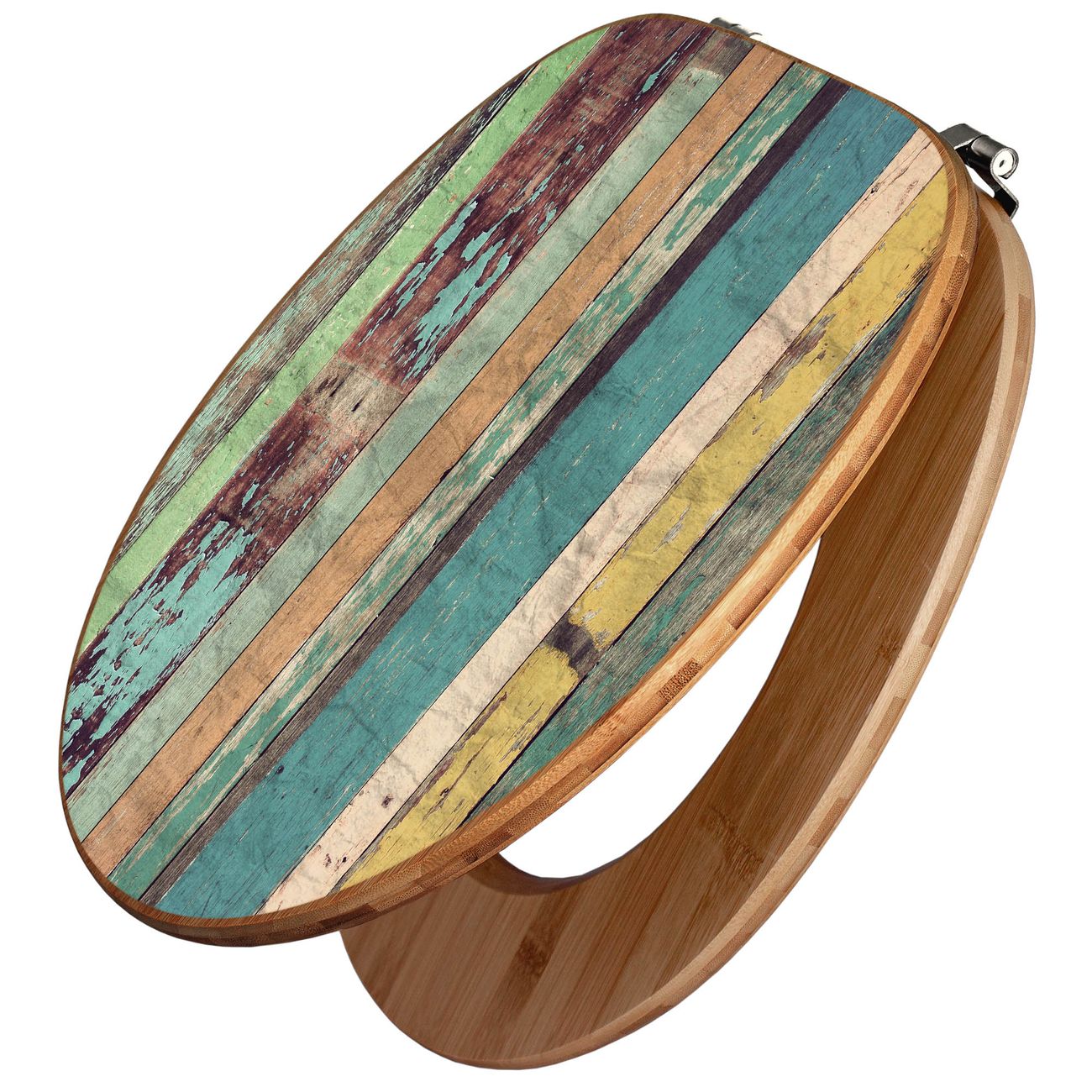 Design WC-Sitz Bambus Holz Motiv Bunte Bretterwand