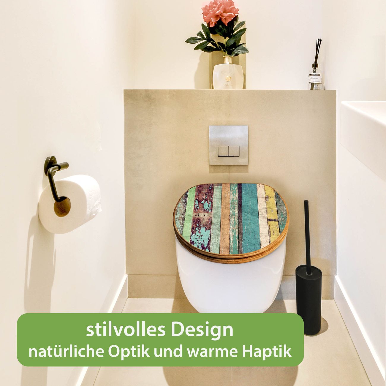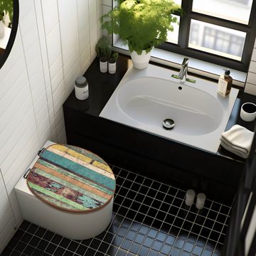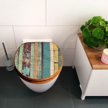 Mit dem banjado Toilettensitz in Bambus verbinden Sie Design und Funktionalität. Sie erhalten den WC-Sitz mit bewährt schwerer Holz Qualität und Universal Scharnieren. Das Motiv Motiv Bunte Bretterwand besteht aus einer schutzlaminierten Motivfolie, die durch das Schutzlaminat zusätzlich vor Kratzern schützt. Durch diesen Motivdruck wird der WC-Sitz zu einem Blickfang in Ihrem Bad.