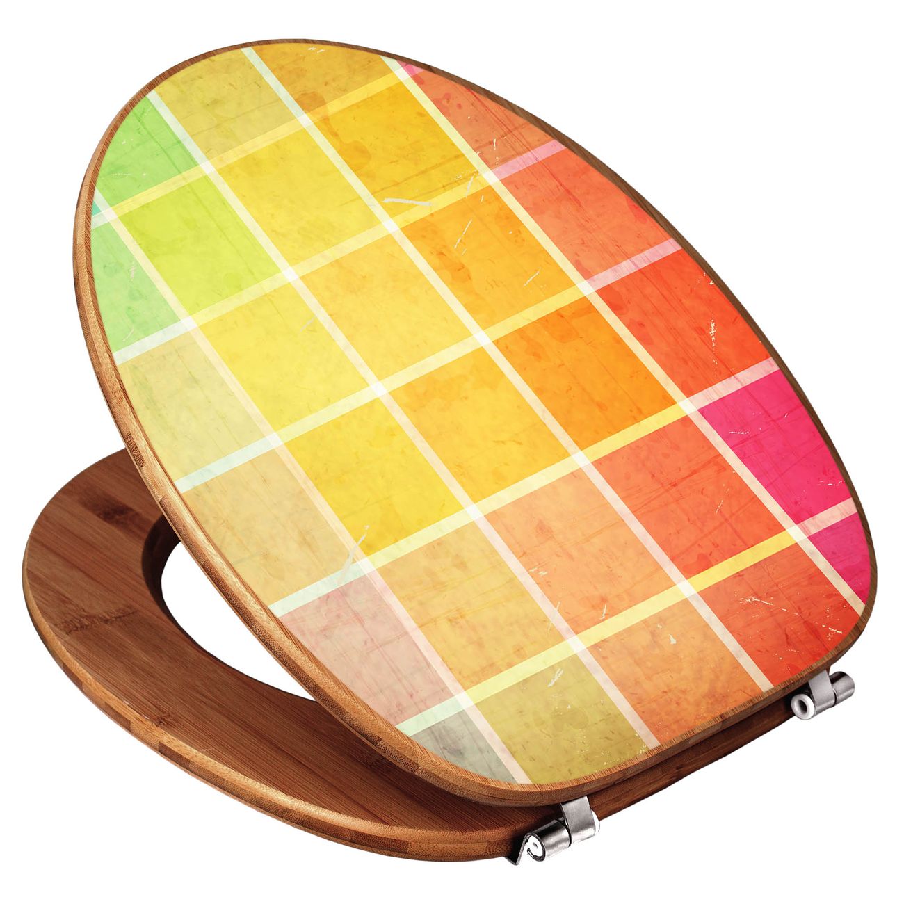 Mit dem banjado Toilettensitz in Bambus verbinden Sie Design und Funktionalität. Sie erhalten den WC-Sitz mit bewährt schwerer Holz Qualität und Universal Scharnieren. Das Motiv Motiv Bunte Glasbausteine besteht aus einer schutzlaminierten Motivfolie, die durch das Schutzlaminat zusätzlich vor Kratzern schützt. Durch diesen Motivdruck wird der WC-Sitz zu einem Blickfang in Ihrem Bad.