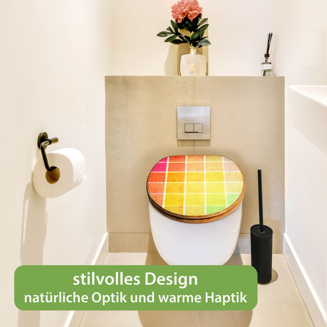 Design WC-Sitz Bambus Holz Motiv Bunte Glasbausteine
