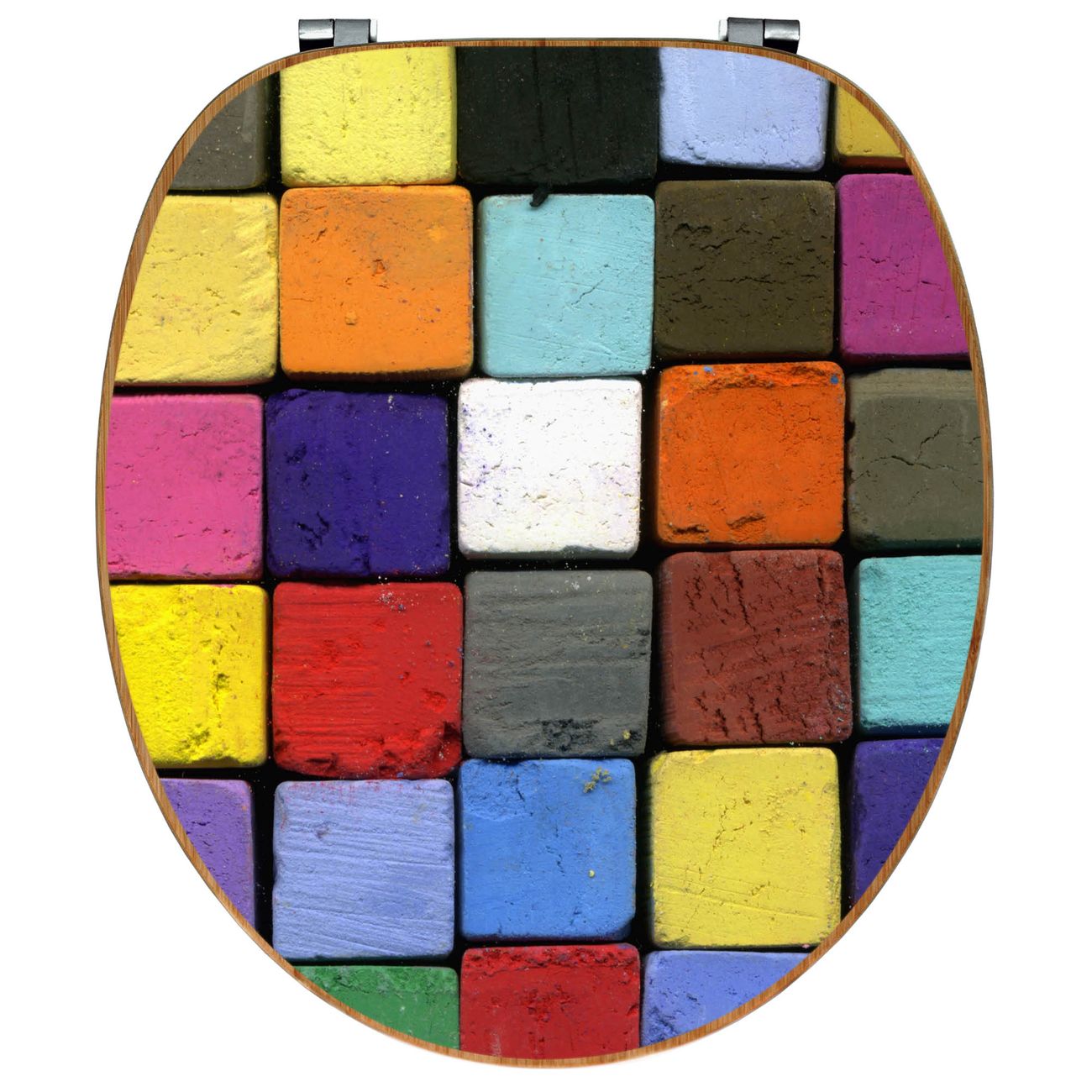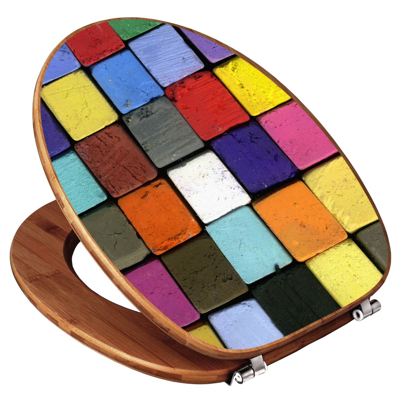 Design WC-Sitz Bambus Holz Motiv Bunte Kreide