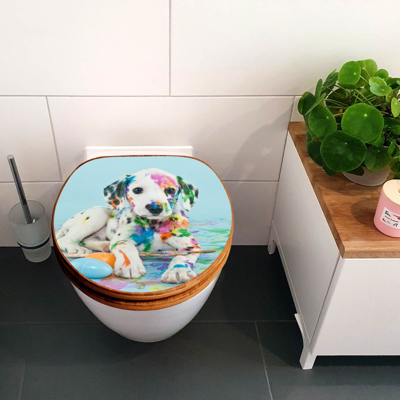 Design WC-Sitz Bambus Holz Motiv Bunter Dalmatiner