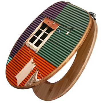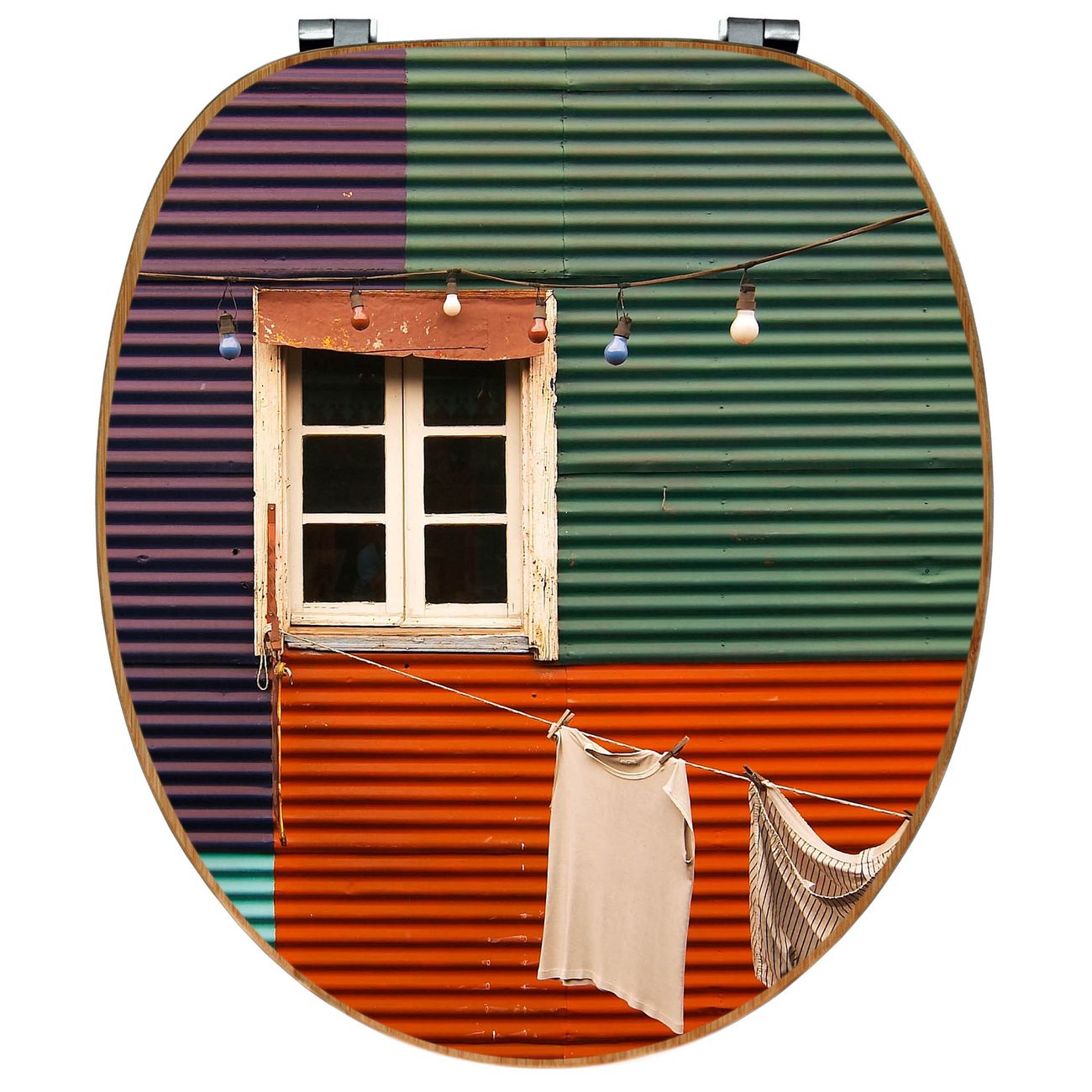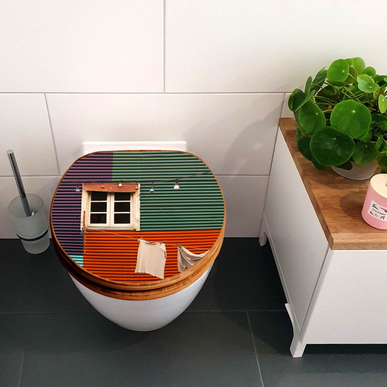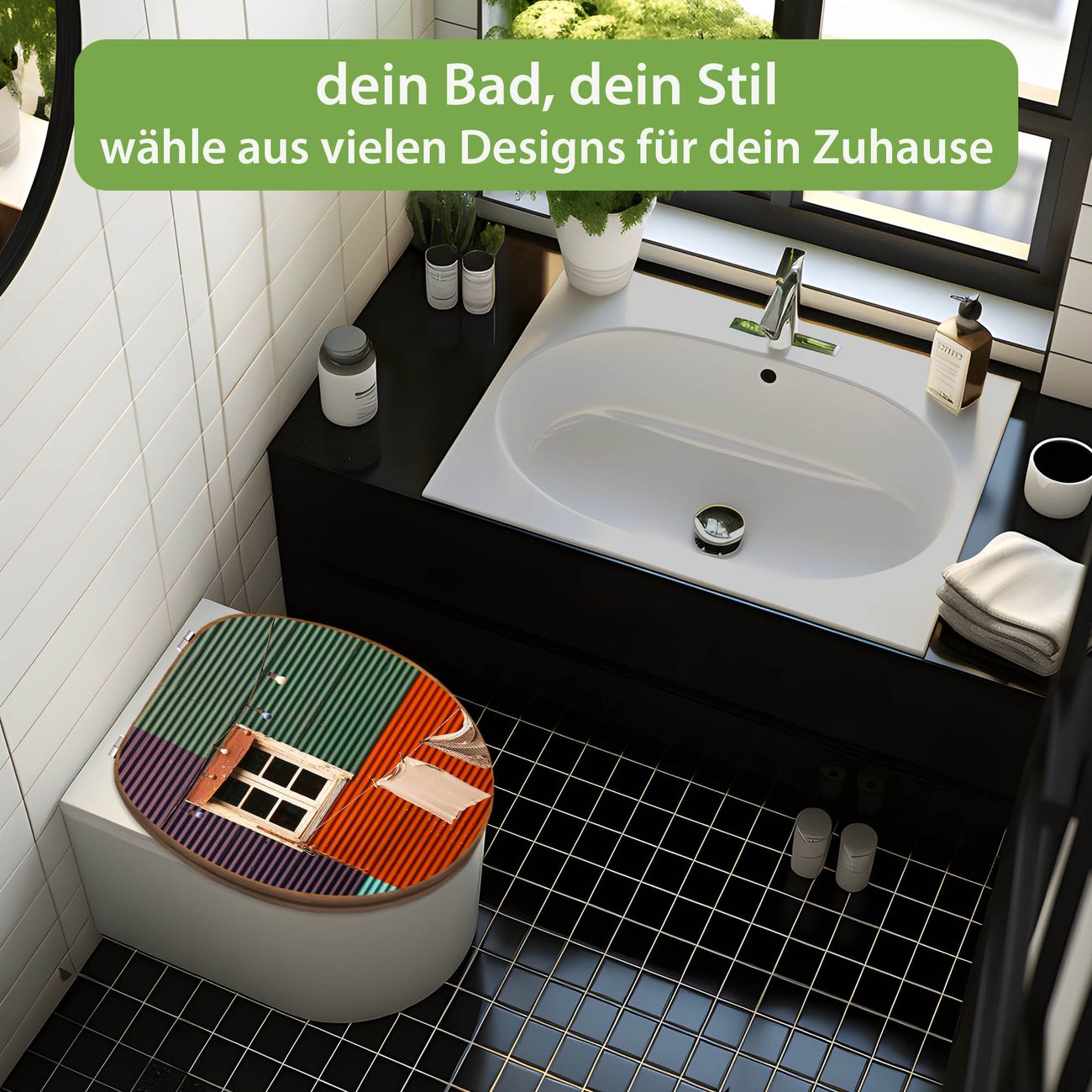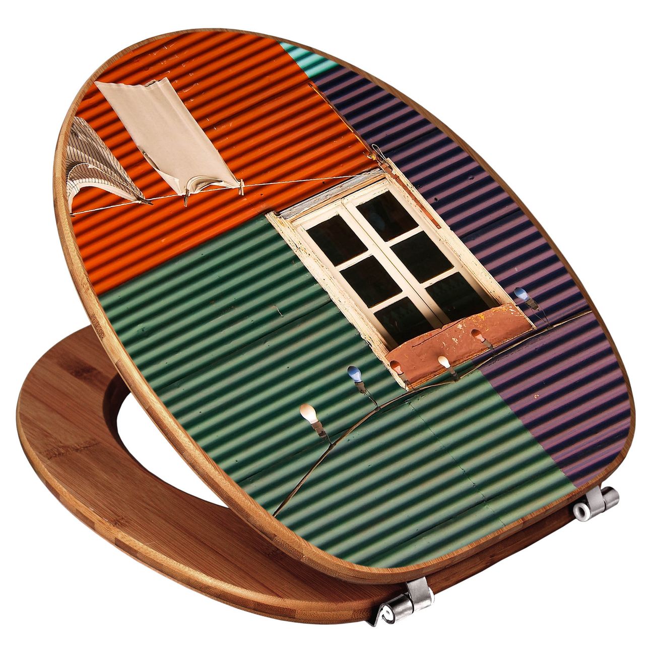 Design WC-Sitz Bambus Holz Motiv Buntes Haus