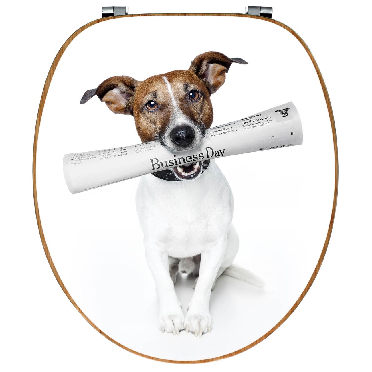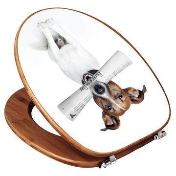 Mit dem banjado Toilettensitz in Bambus verbinden Sie Design und Funktionalität. Sie erhalten den WC-Sitz mit bewährt schwerer Holz Qualität und Universal Scharnieren. Das Motiv Motiv Business Day besteht aus einer schutzlaminierten Motivfolie, die durch das Schutzlaminat zusätzlich vor Kratzern schützt. Durch diesen Motivdruck wird der WC-Sitz zu einem Blickfang in Ihrem Bad.