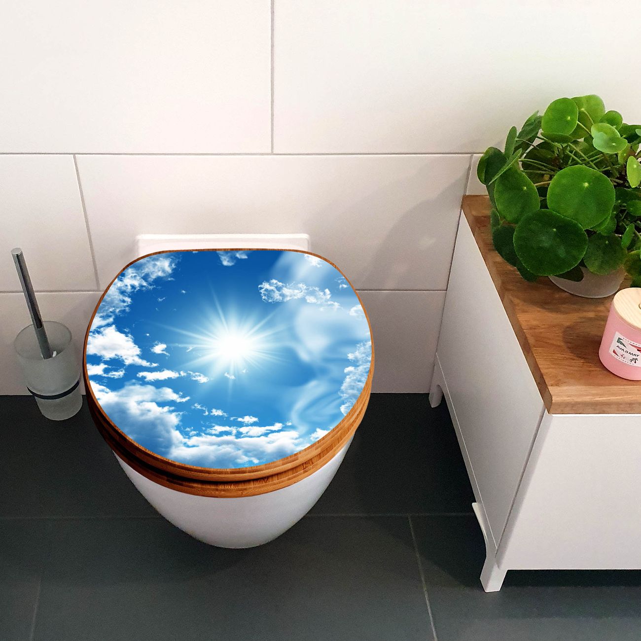 Design WC-Sitz Bambus Holz Motiv Clouds
