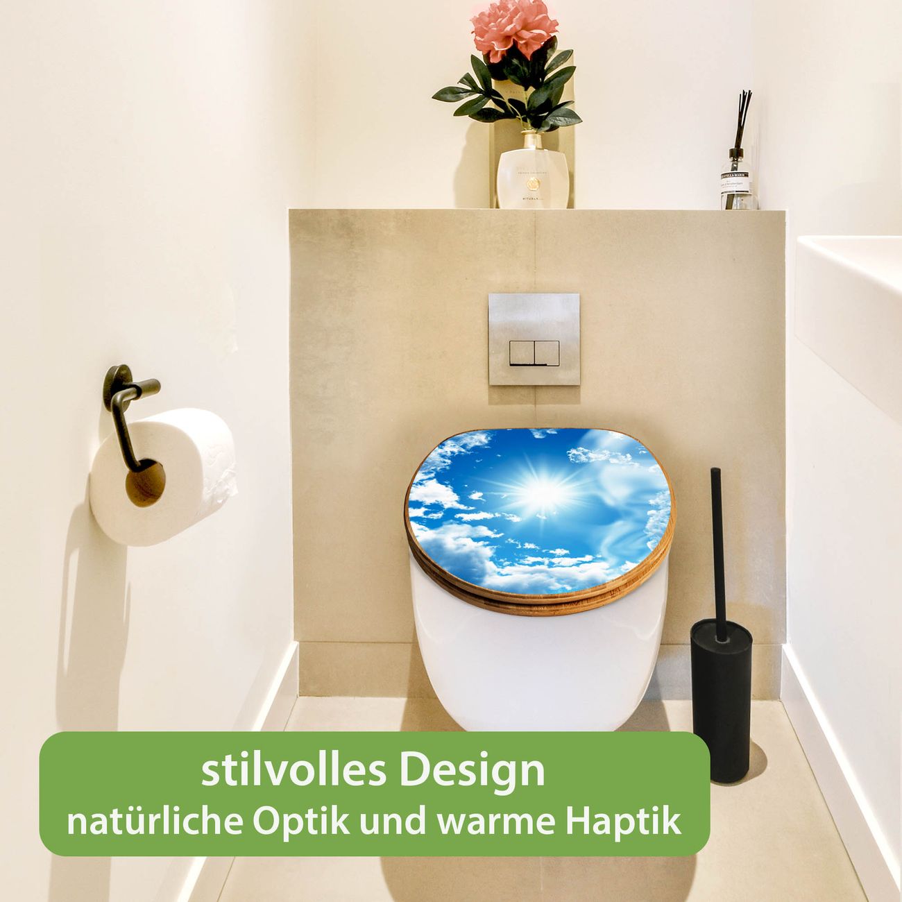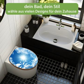 Mit dem banjado Toilettensitz in Bambus verbinden Sie Design und Funktionalität. Sie erhalten den WC-Sitz mit bewährt schwerer Holz Qualität und Universal Scharnieren. Das Motiv Motiv Clouds besteht aus einer schutzlaminierten Motivfolie, die durch das Schutzlaminat zusätzlich vor Kratzern schützt. Durch diesen Motivdruck wird der WC-Sitz zu einem Blickfang in Ihrem Bad.