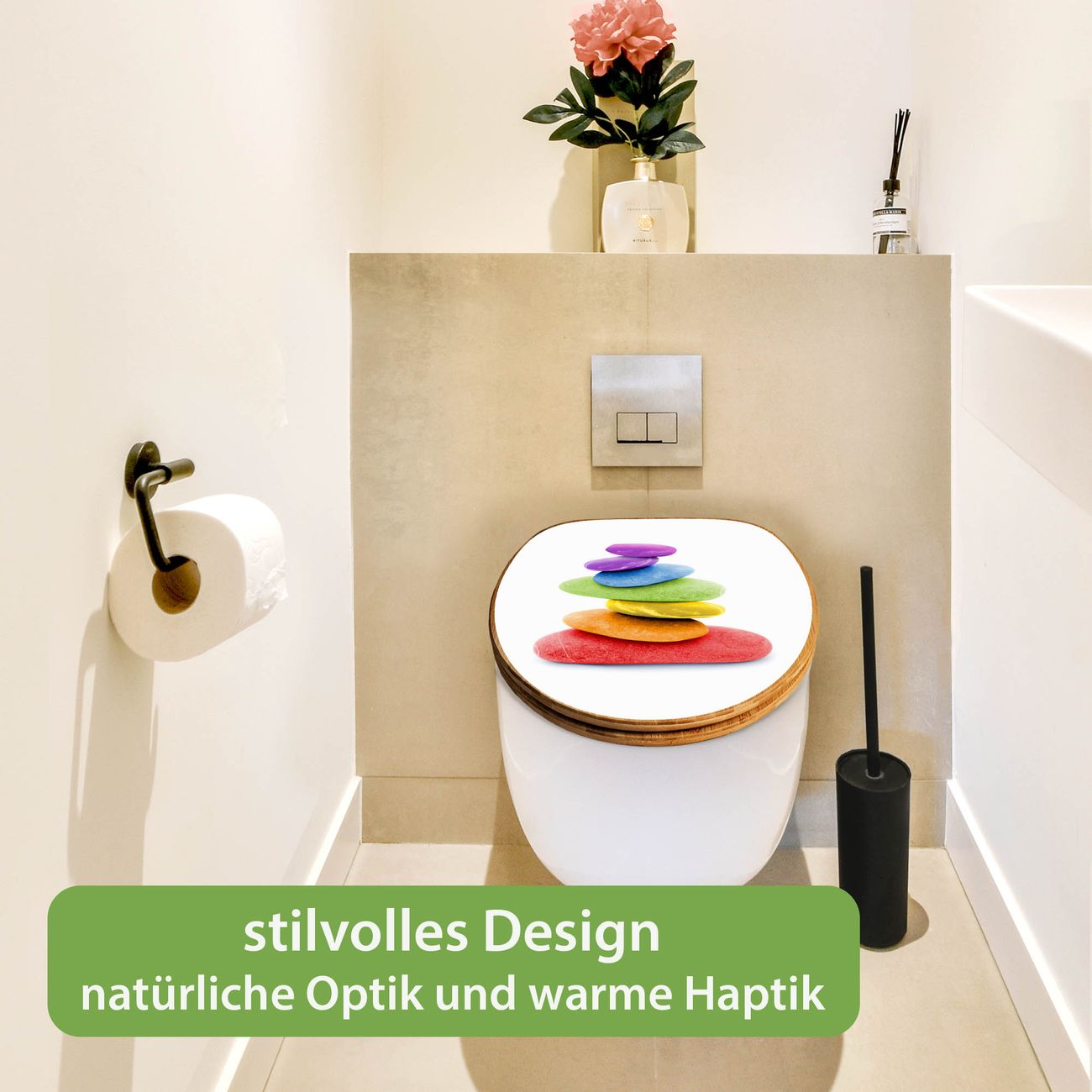 Design WC-Sitz Bambus Holz Motiv Coloured Stone