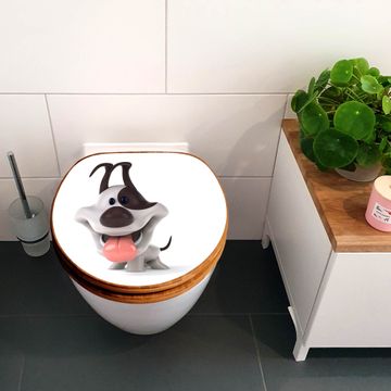 Design WC-Sitz Bambus Holz Motiv Comic-Hund