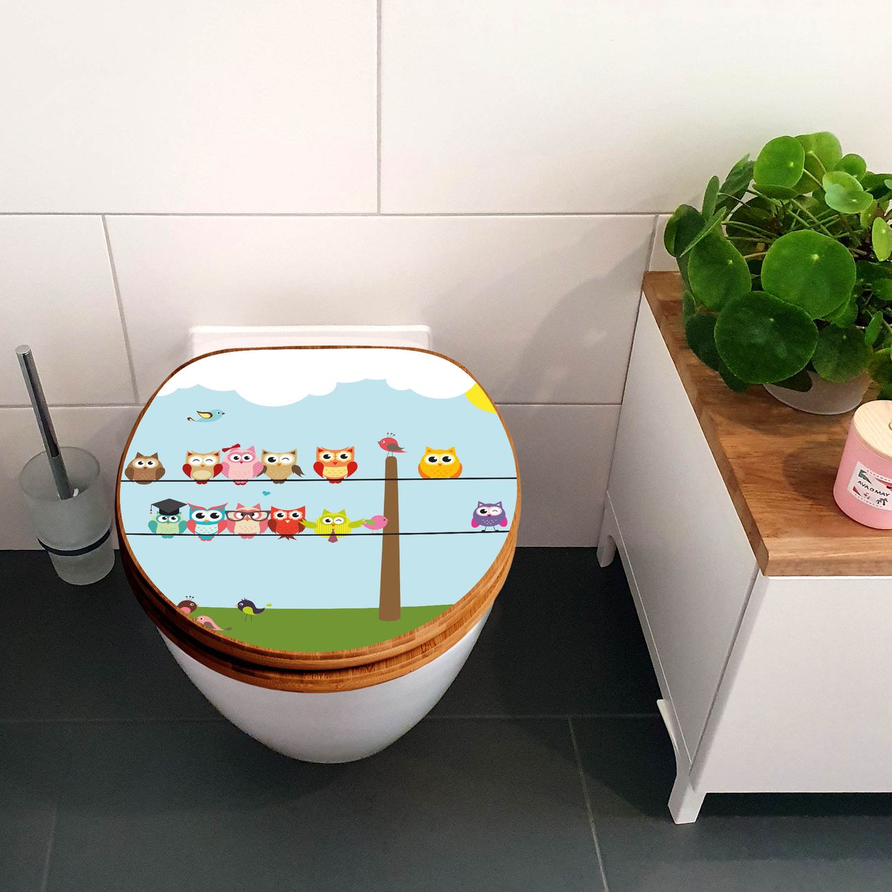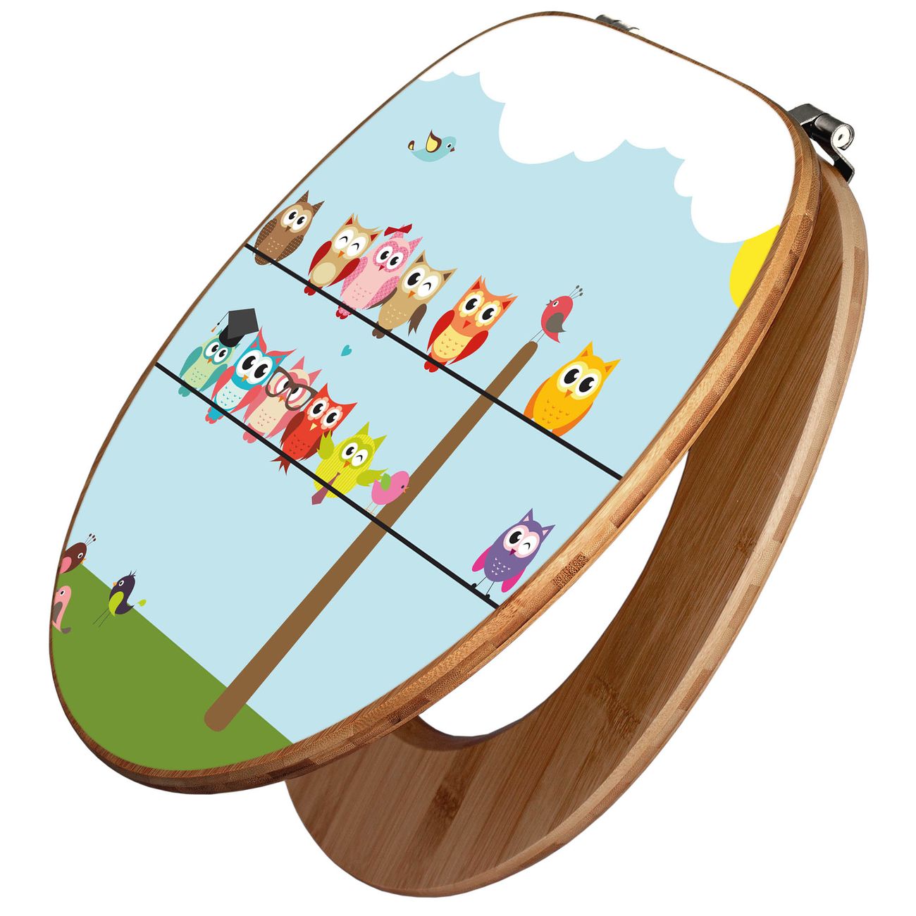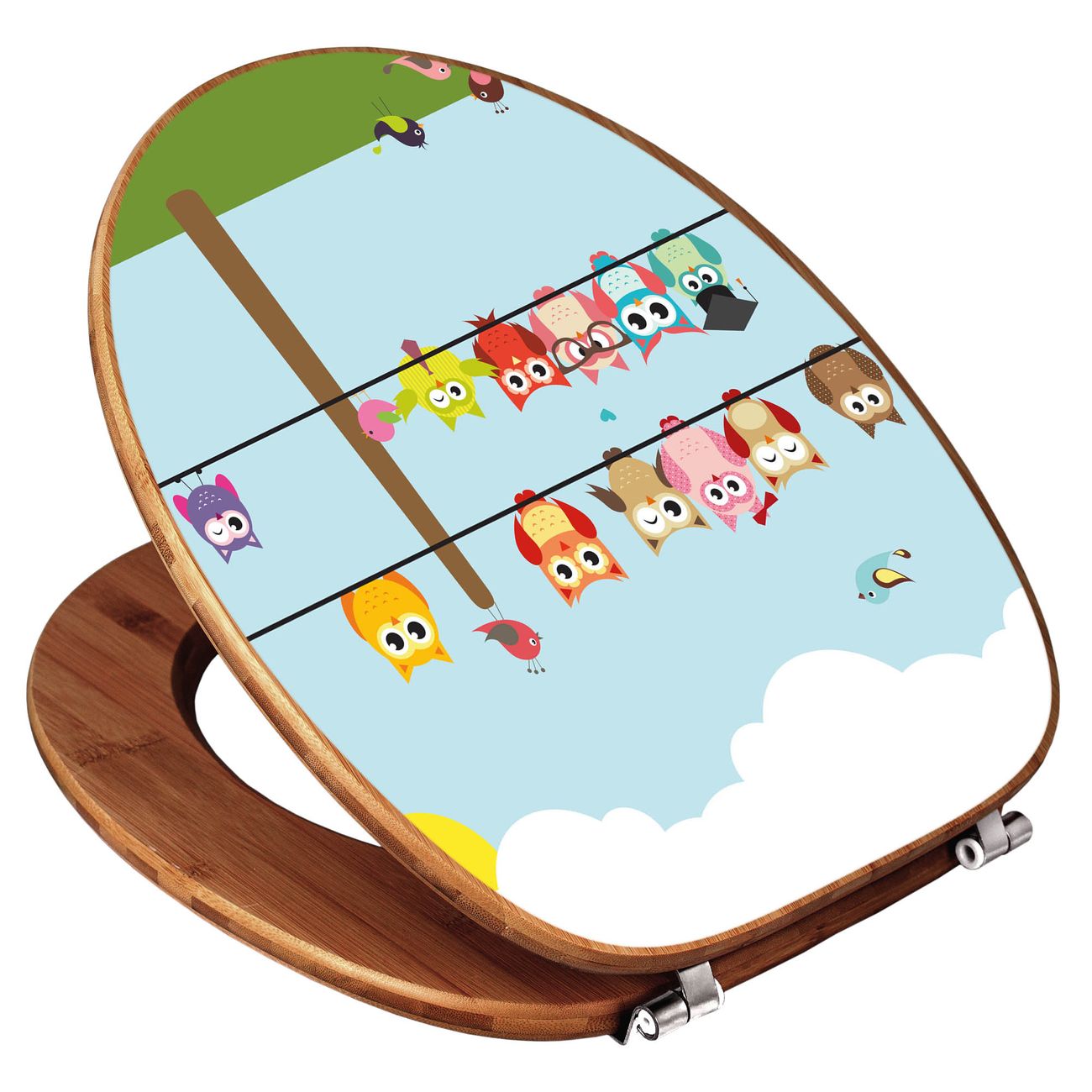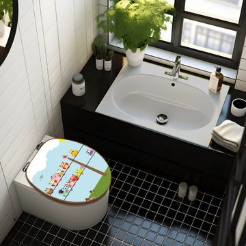 Mit dem banjado Toilettensitz in Bambus verbinden Sie Design und Funktionalität. Sie erhalten den WC-Sitz mit bewährt schwerer Holz Qualität und Universal Scharnieren. Das Motiv Motiv Da Wären Wir besteht aus einer schutzlaminierten Motivfolie, die durch das Schutzlaminat zusätzlich vor Kratzern schützt. Durch diesen Motivdruck wird der WC-Sitz zu einem Blickfang in Ihrem Bad.