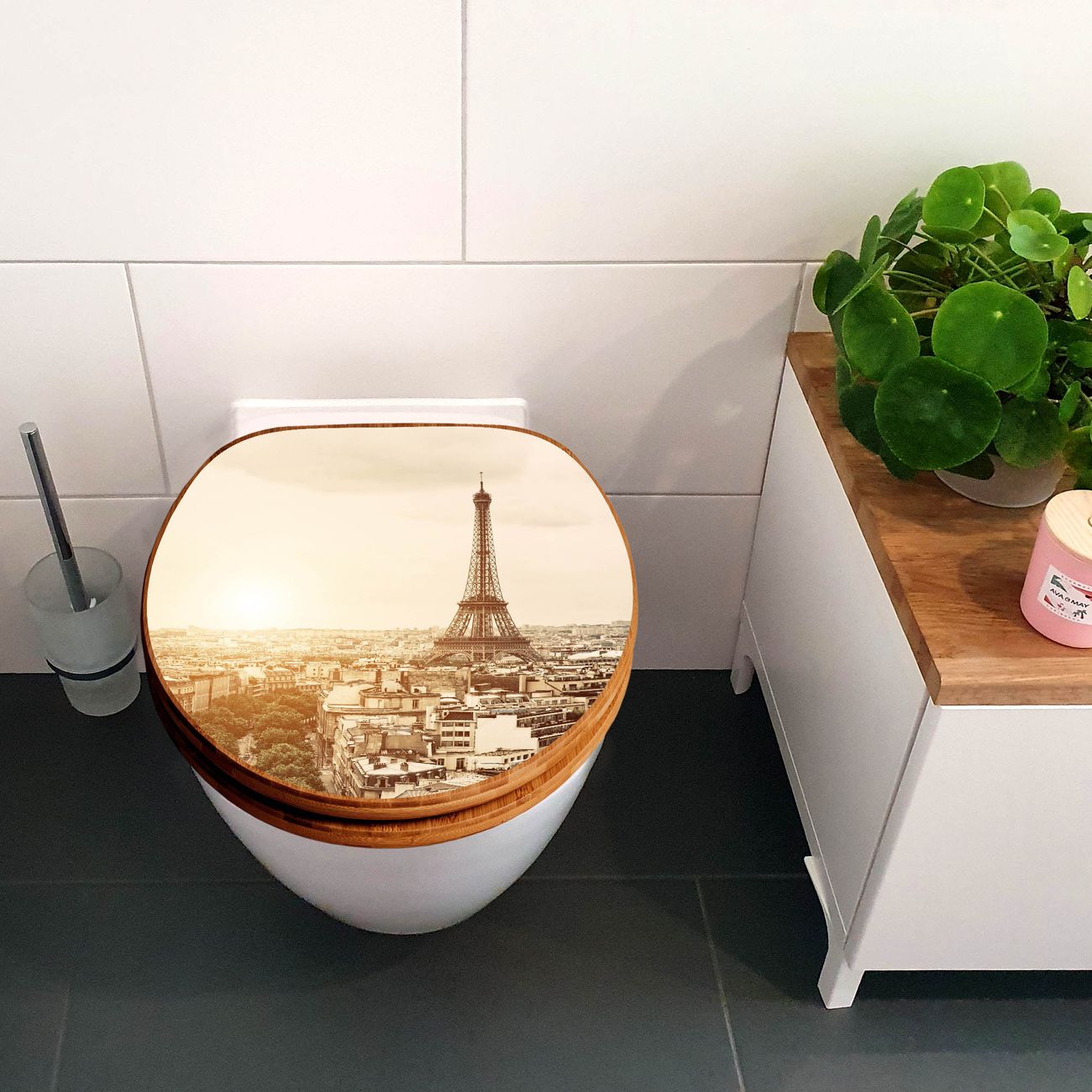 Design WC-Sitz Bambus Holz Motiv Dächer Von Paris