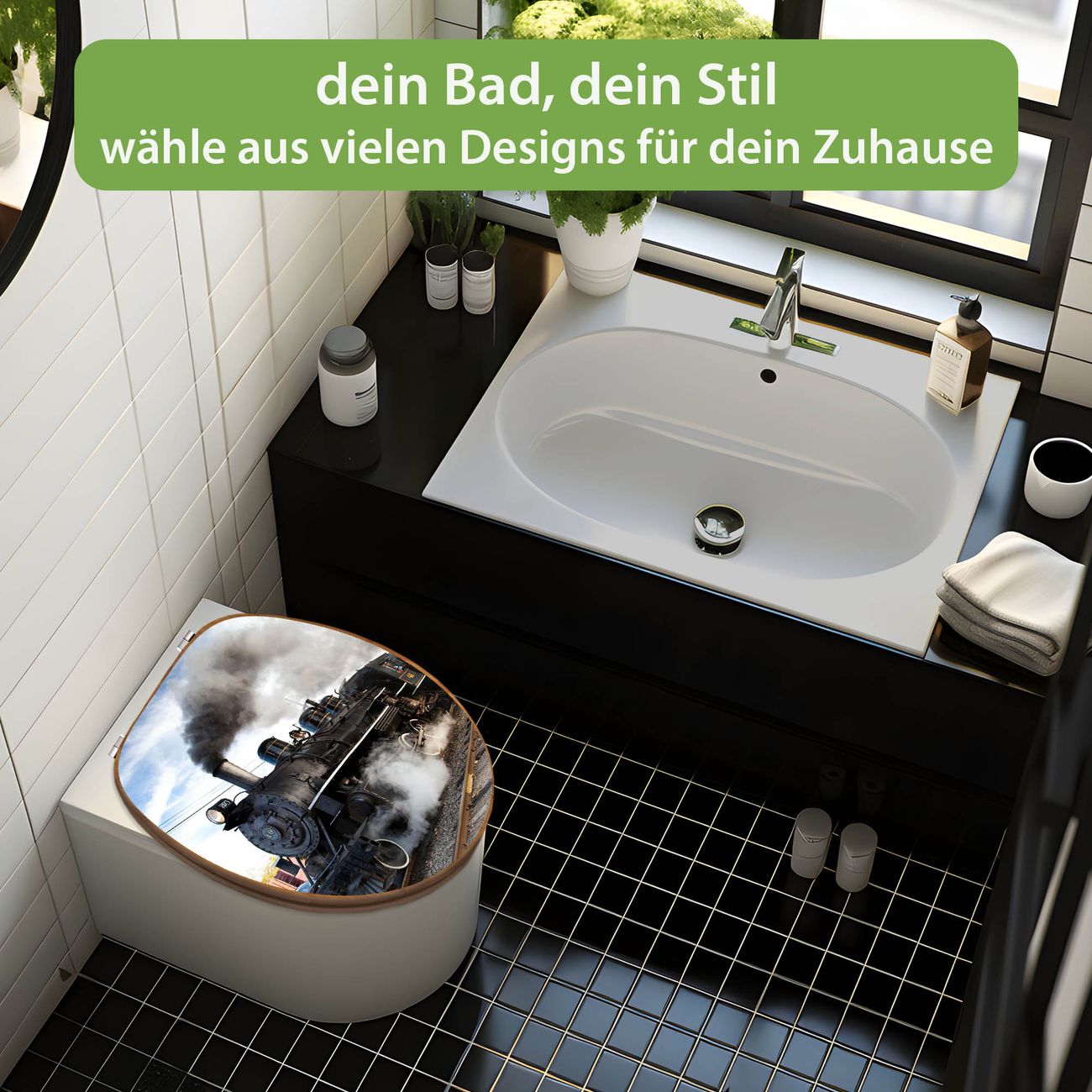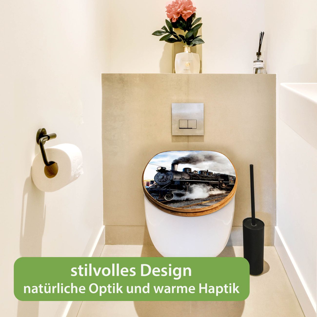 Design WC-Sitz Bambus Holz Motiv Dampflok