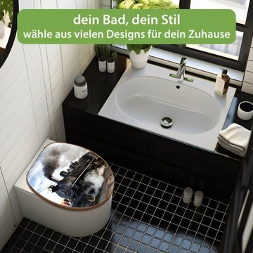 Mit dem banjado Toilettensitz in Bambus verbinden Sie Design und Funktionalität. Sie erhalten den WC-Sitz mit bewährt schwerer Holz Qualität und Universal Scharnieren. Das Motiv Motiv Dampflok besteht aus einer schutzlaminierten Motivfolie, die durch das Schutzlaminat zusätzlich vor Kratzern schützt. Durch diesen Motivdruck wird der WC-Sitz zu einem Blickfang in Ihrem Bad.