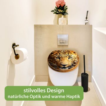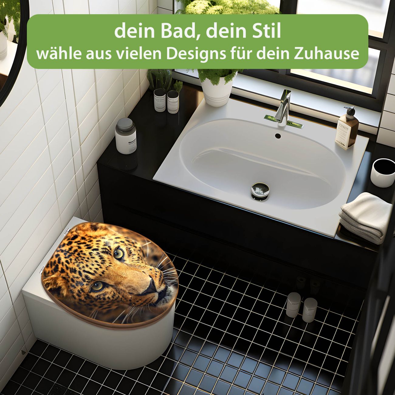 Mit dem banjado Toilettensitz in Bambus verbinden Sie Design und Funktionalität. Sie erhalten den WC-Sitz mit bewährt schwerer Holz Qualität und Universal Scharnieren. Das Motiv Motiv Daphne besteht aus einer schutzlaminierten Motivfolie, die durch das Schutzlaminat zusätzlich vor Kratzern schützt. Durch diesen Motivdruck wird der WC-Sitz zu einem Blickfang in Ihrem Bad.