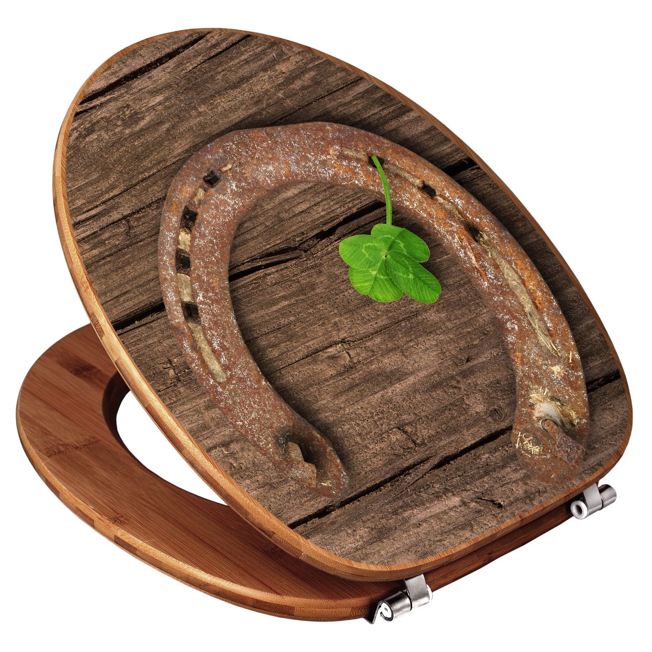 Mit dem banjado Toilettensitz in Bambus verbinden Sie Design und Funktionalität. Sie erhalten den WC-Sitz mit bewährt schwerer Holz Qualität und Universal Scharnieren. Das Motiv Motiv Doppeltes Glück besteht aus einer schutzlaminierten Motivfolie, die durch das Schutzlaminat zusätzlich vor Kratzern schützt. Durch diesen Motivdruck wird der WC-Sitz zu einem Blickfang in Ihrem Bad.