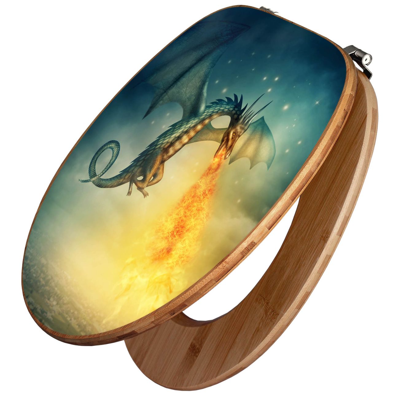 Design WC-Sitz Bambus Holz Motiv Drachen