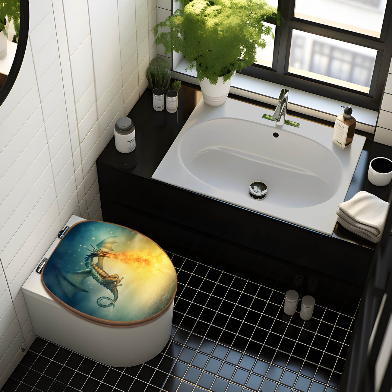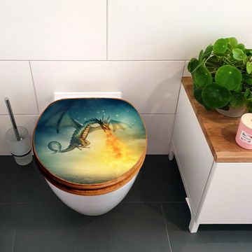 Mit dem banjado Toilettensitz in Bambus verbinden Sie Design und Funktionalität. Sie erhalten den WC-Sitz mit bewährt schwerer Holz Qualität und Universal Scharnieren. Das Motiv Motiv Drachen besteht aus einer schutzlaminierten Motivfolie, die durch das Schutzlaminat zusätzlich vor Kratzern schützt. Durch diesen Motivdruck wird der WC-Sitz zu einem Blickfang in Ihrem Bad.