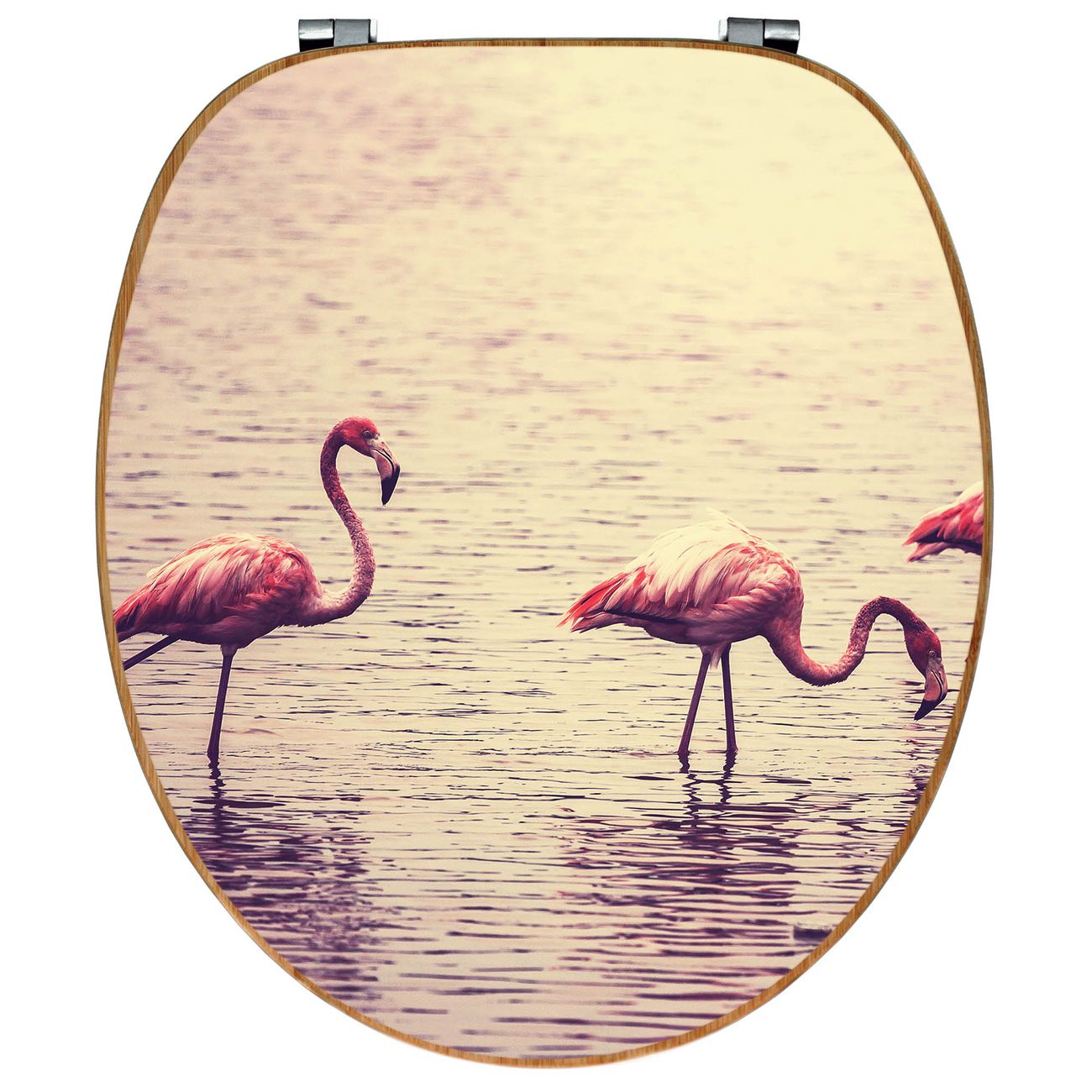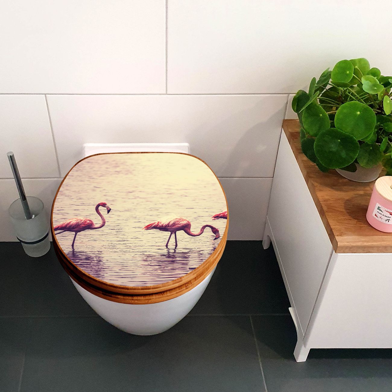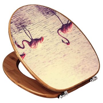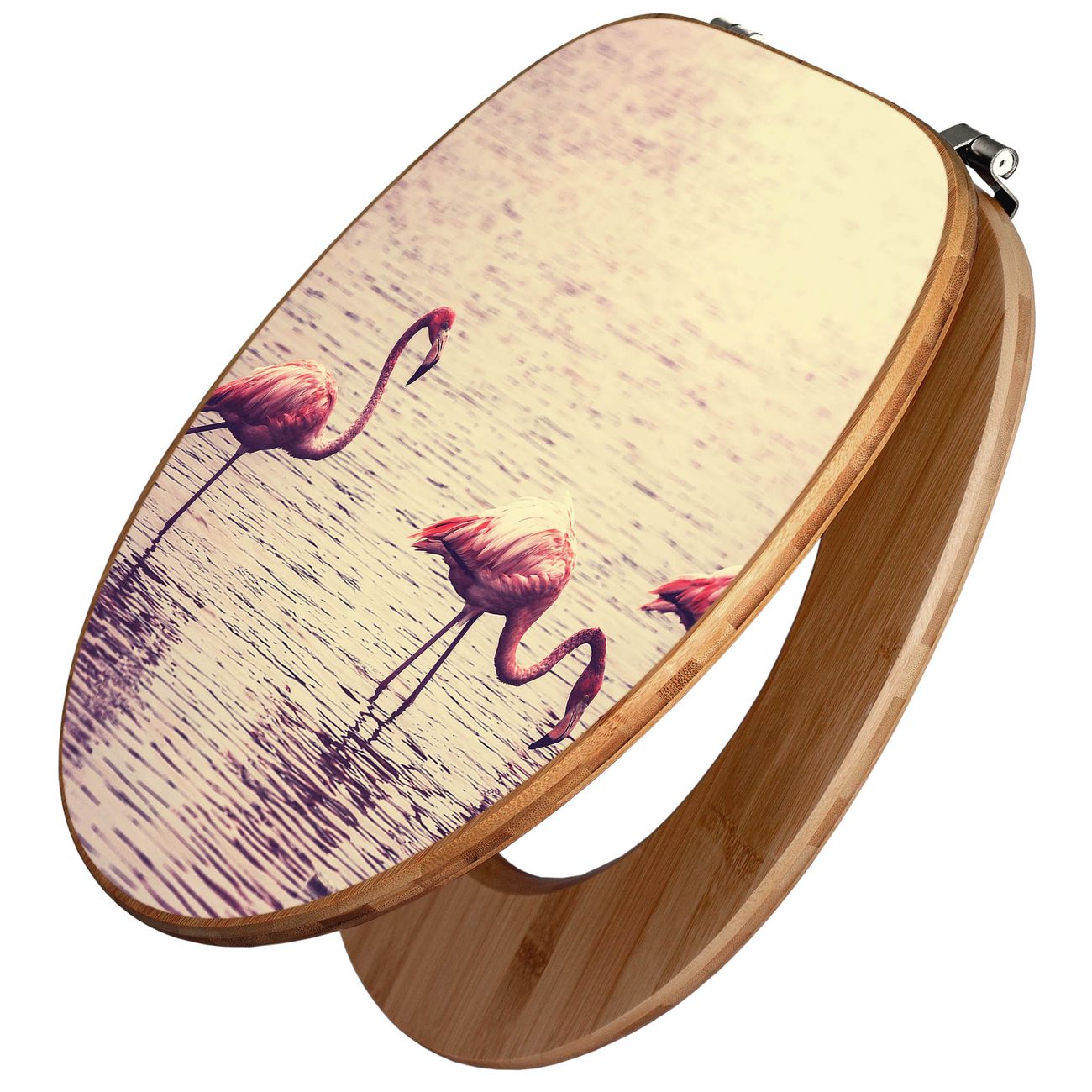 Design WC-Sitz Bambus Holz Motiv Drei Flamnigos