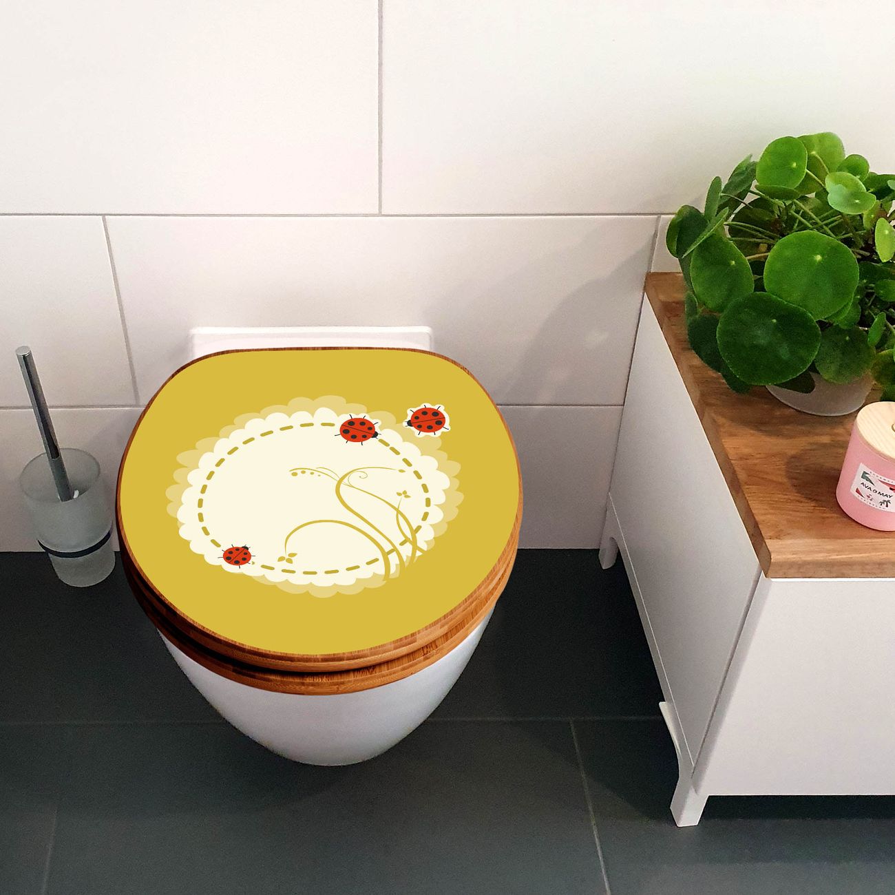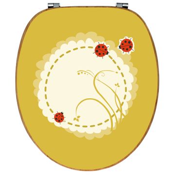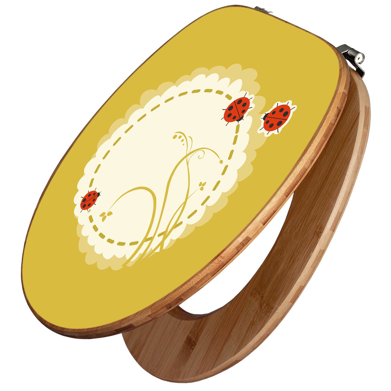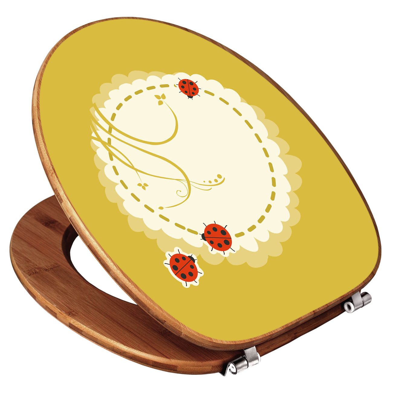 Design WC-Sitz Bambus Holz Motiv Drei Marienkäfer